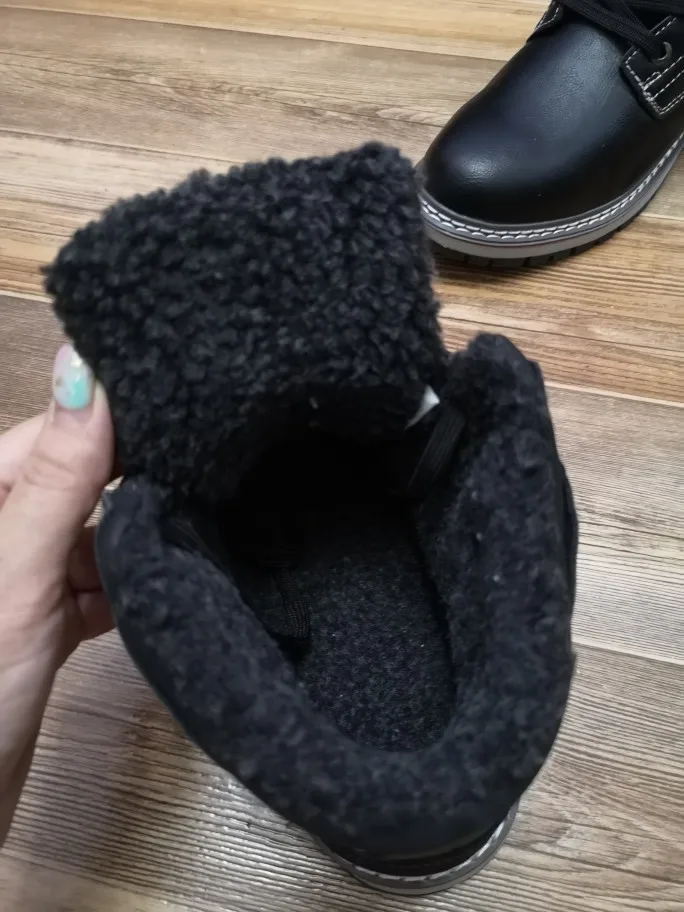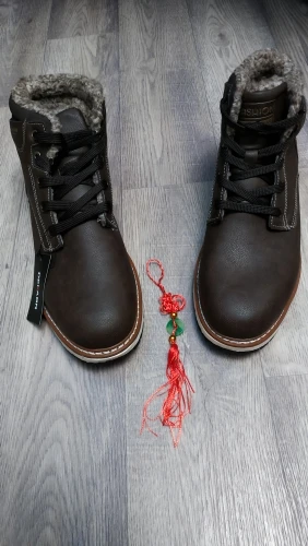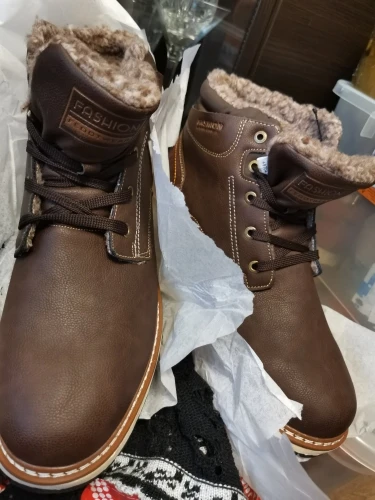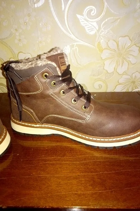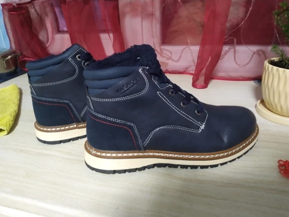 Ботинки очень понравились, на ноге смотрятся отлично, размер подошёл идеально на стопу 26,5 см. Сделаны очень аккуратно, внутри утепляющий слой выглядит как овчинка, хотя, конечно, не натуральная. Все понравилось, благодарность изготовителям и продавцу за качественный товар. Рекомендую товар и продавца. Спасибо.