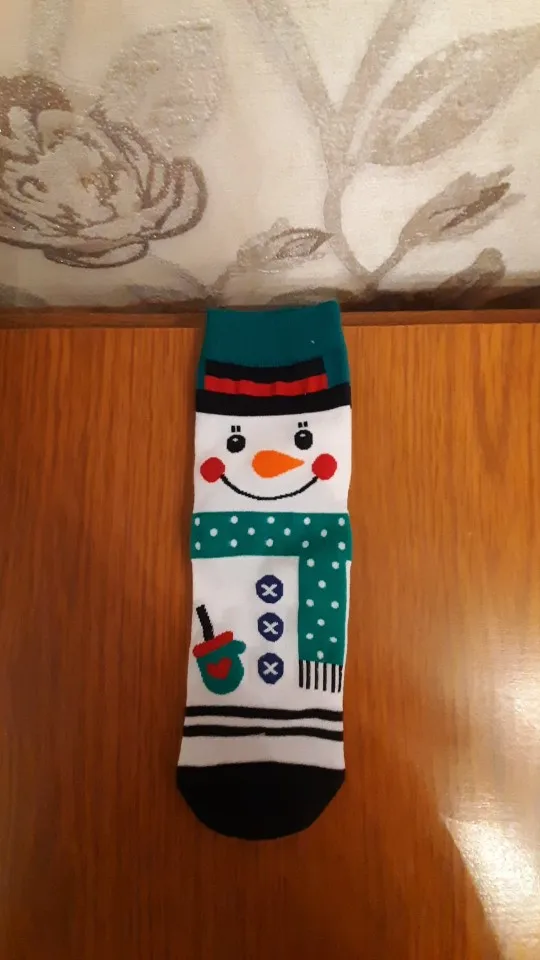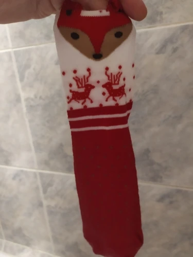 Хорошие тёплые носочки с новогодним принтом. Доставка не быстрая, но носочки того стоят, мне понравились- могу рекомендовать к покупке