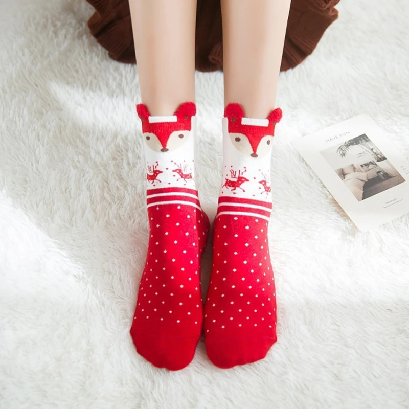 Новинка 2021 года , 1 пара женских Хлопковых Носков Рождественские Носки с рисунком Красной собаки, лося, медведя, лисы на весну, осень и зиму, лидер продаж, рождественский подарок носки новогодние