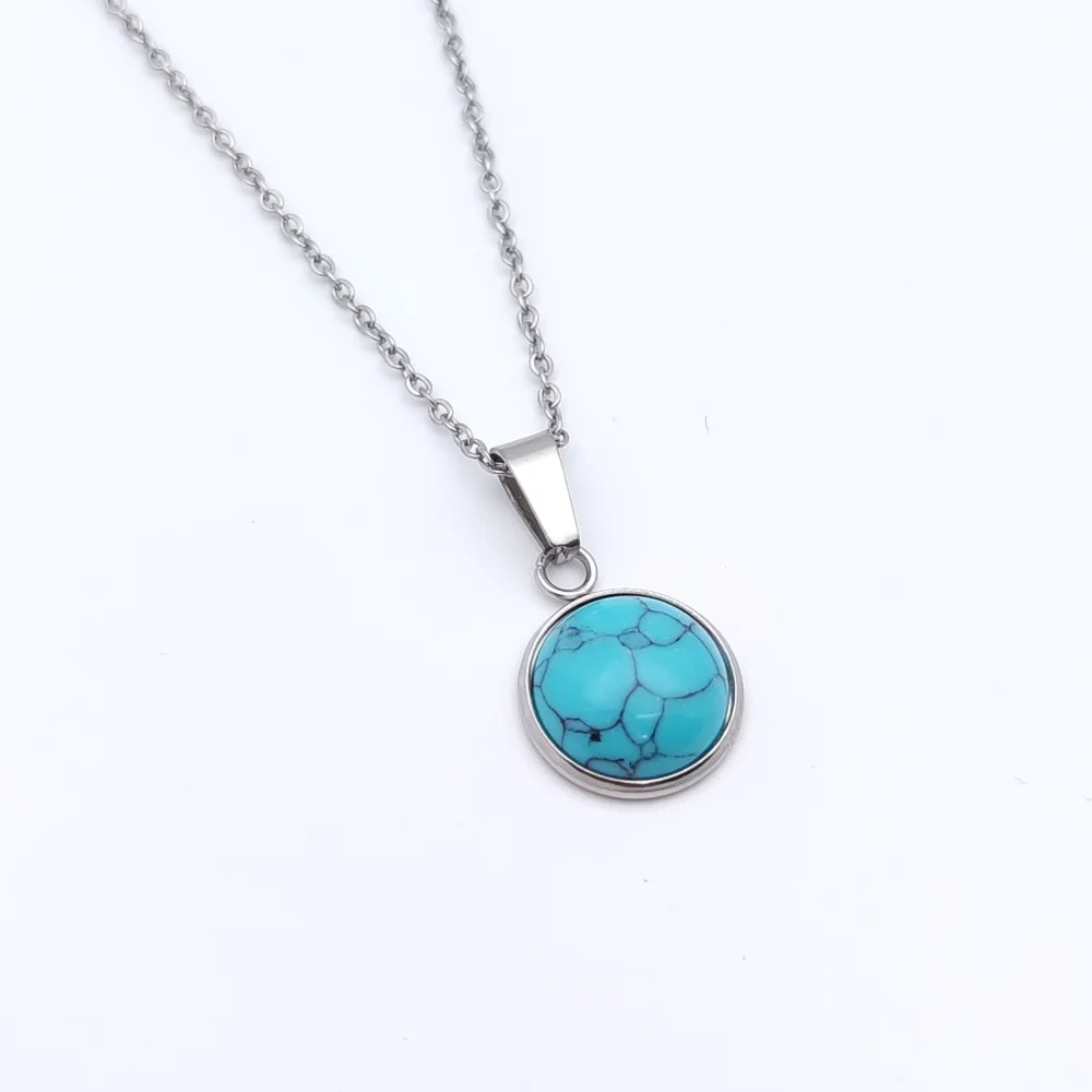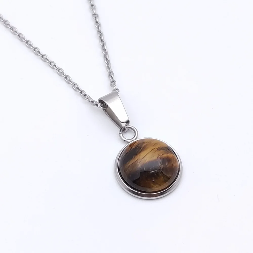 Ожерелье с подвеской из натурального камня 12 мм, серьги-гвоздики из нержавеющей стали, цепочка с друзой, опалом, синий, розовый кристалл, ошейник для женщин, мужчин, подарок