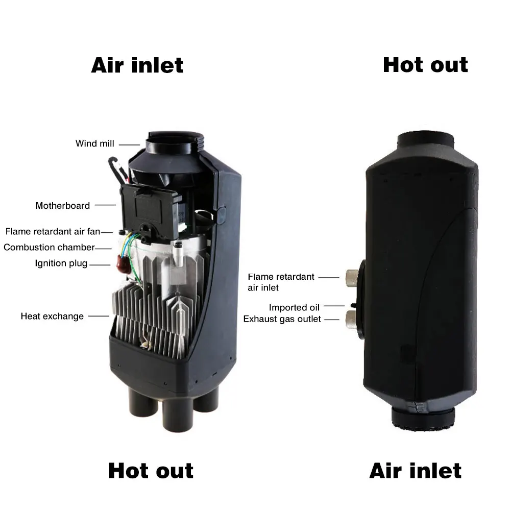 Особенности:Может использоваться на больших высотах, 1500 метров над уровнем моря.Можно регулировать мощность от 1 кВт до 8 кВт, удовлетворить различные потребности.Добавлены локоть тепловой трубы, чтобы повернуть направление ветра.Дополнительная ручка для переноски.Может устранить Мороз окна.Компактная конструкция, легко устанавливается.Может демонтировать новый автомобиль при замене транспортного средства.Использование передовой технологии автоматического управления с надежными ненормальными условиями эксплуатации.Можно использовать дизельное топливо.Характеристики:Мощность нагревателя: 1-8 кВтТопливный бензин: дизельТип кондиционера автомобиля: отоплениеНоминальное напряжение: 12 В/24 В (опционально)Расход топлива (л/ч): 0,64Рабочая температура нагревателя: -40 °C ~ + 50 °CРабочая температура масляного насоса: -40 °C ~ + 40 °CРазмер изделия: около 39*14*15 см/15,35*5,51 * 5.91inЦвет: белый и сеткаКорпус: пластикВ комплект входит:1 x Воздушный обогреватель1 х глушитель1 x ЖК-термостат1 пульт дистанционного управления1 бак (9 л)1 х проволочный пучок1 x вентиляционное отверстие1 х воздуховодная труба1 х впускная труба1 х выхлопная труба1 х масляный насос1 x фиксированная пластина1 х белая масляная труба1 x насадка для масла1 x крепеж1 комплект установки1 * локоть тепловой трубы1 * ручка для переноски