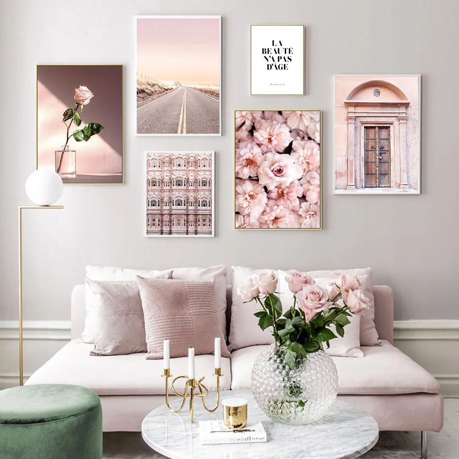 Румяна, розовые пионы, роза, винтажная дверь, настенная живопись, холст, картины, постеры и принты для гостиной, домашний декор