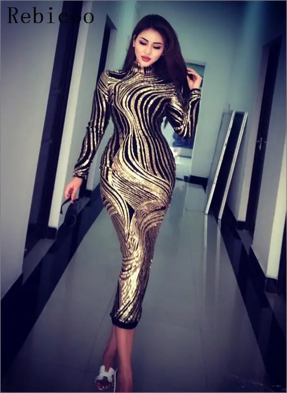 Роскошные золотистые платья Знаменитости с блестками, женское эластичное платье миди, Элегантное Длинное Вечернее Платье размера плюс для выпускного вечера
