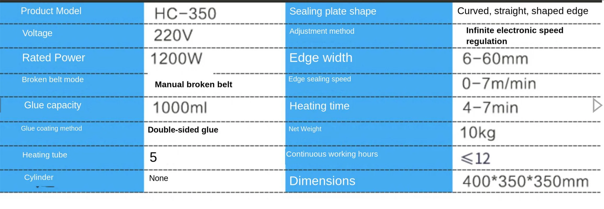 Скорость кромки: 0-6/мин