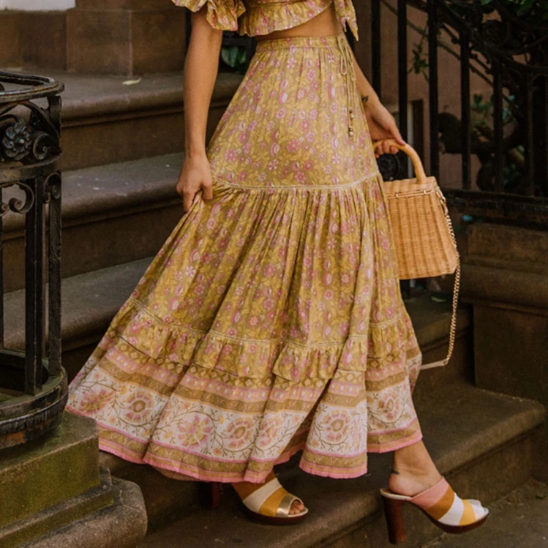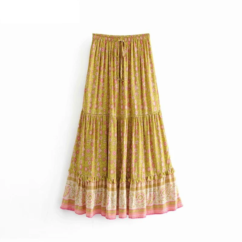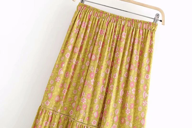 Женская юбка в стиле хиппи Happie Queen, желтая пляжная юбка в богемном стиле с цветочным принтом и высокой эластичной талией, трапециевидная юбка