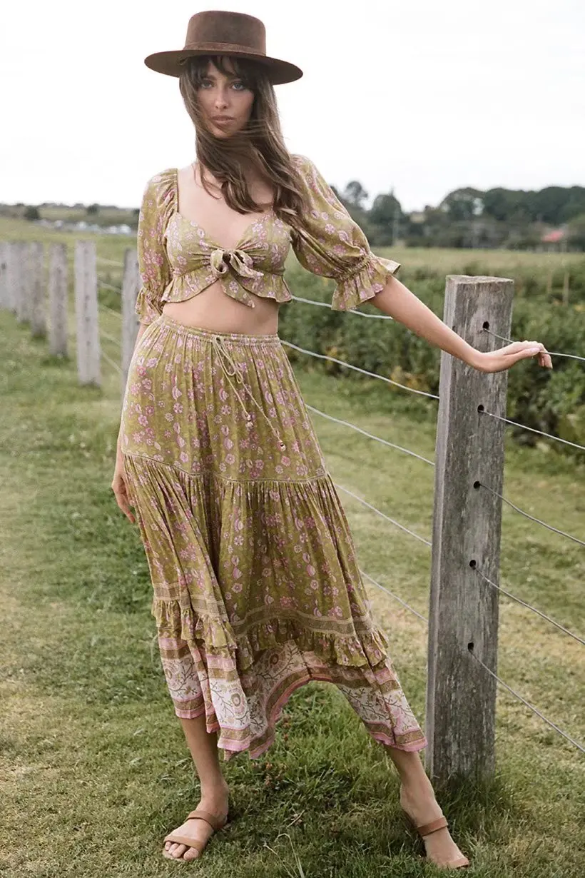 Винтажная шикарная Женская юбка в стиле хиппи с цветочным принтом и...