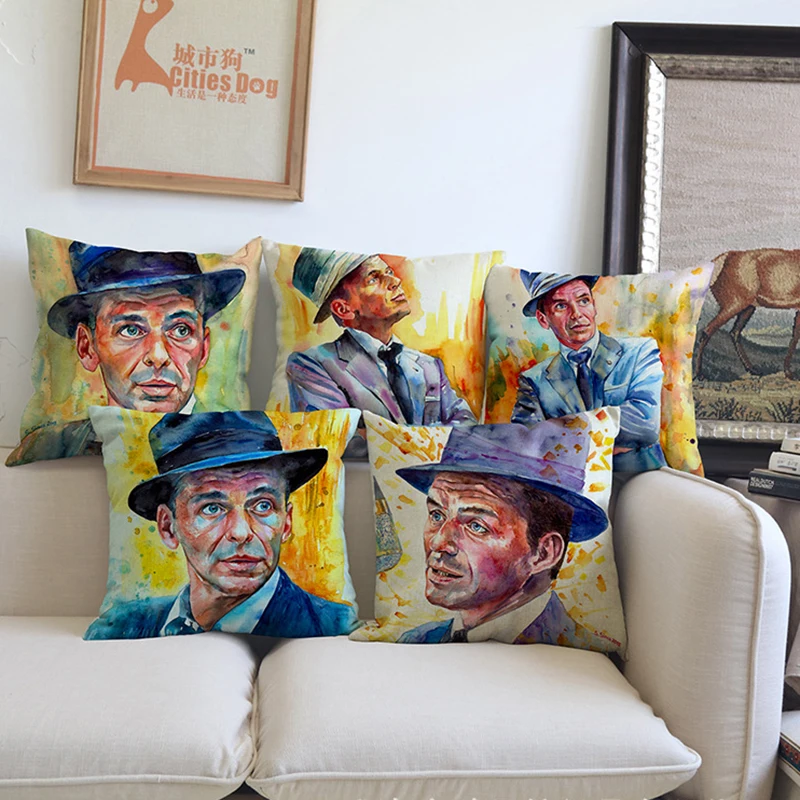 Пленочный персонаж Фрэнк Синатра акварельный портрет искусство льняная наволочка домашняя гостиная диван сиденье декоративная наволочка чехол