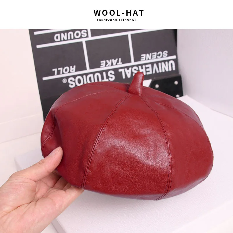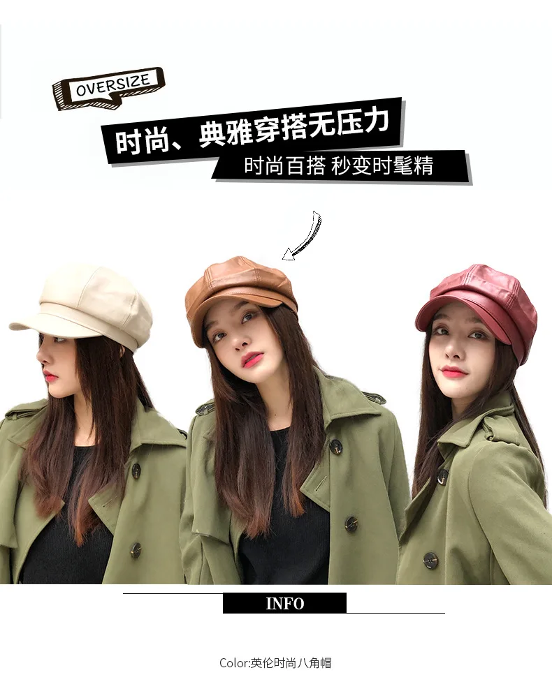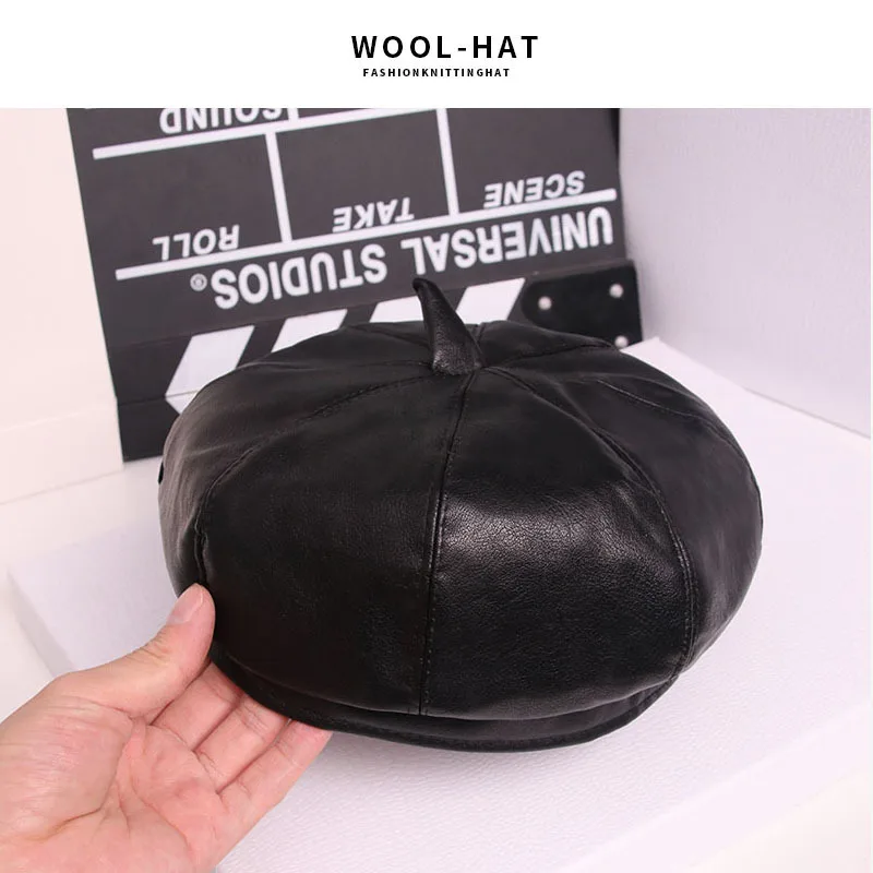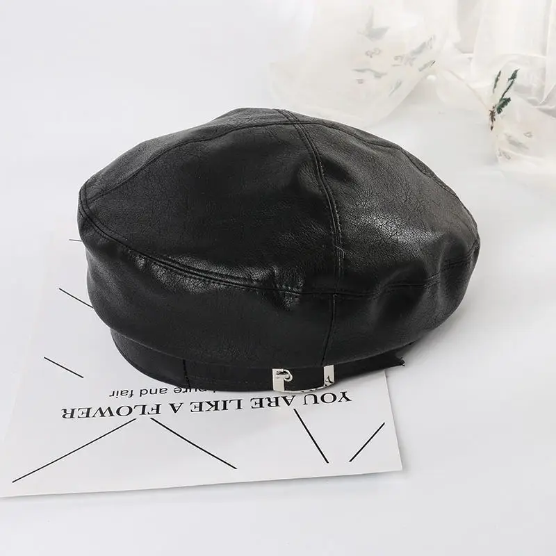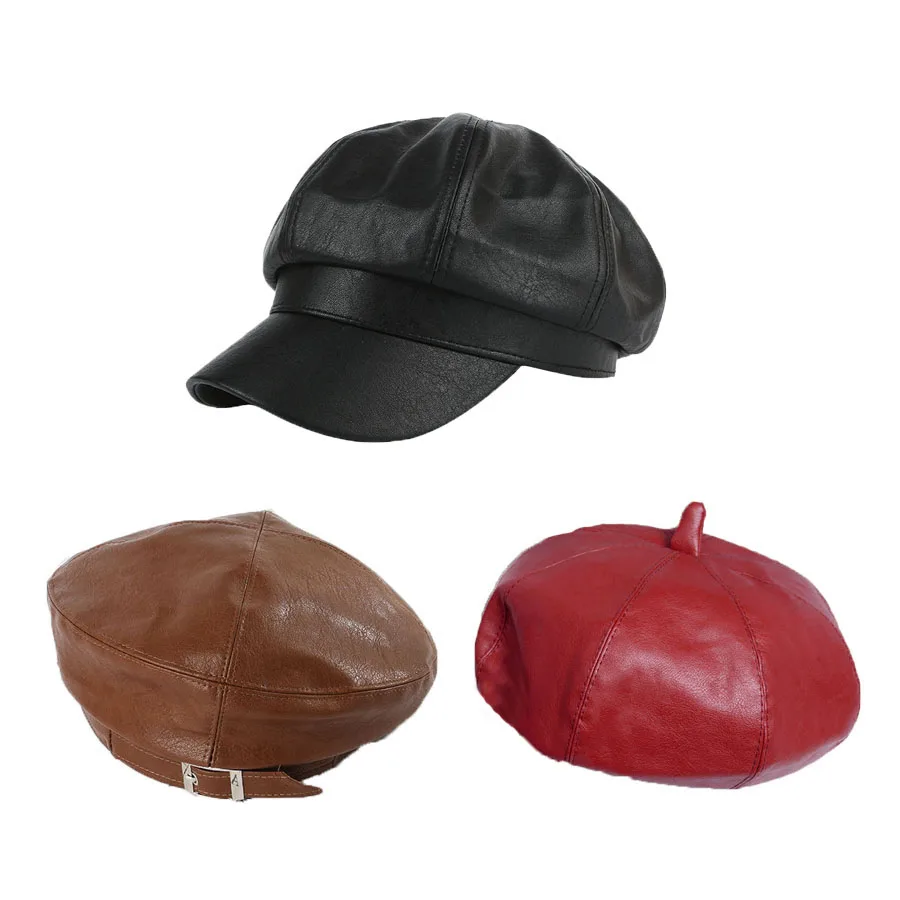 Женский восьмиугольный берет HanXi, зимняя шапка из искусственной кожи с козырьком