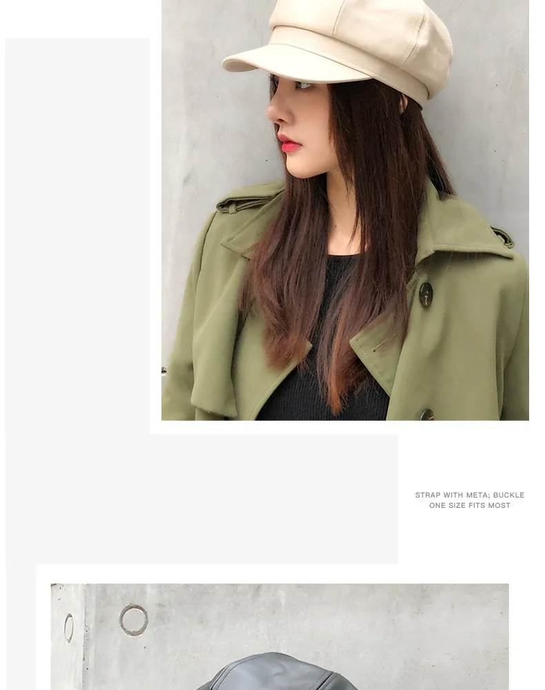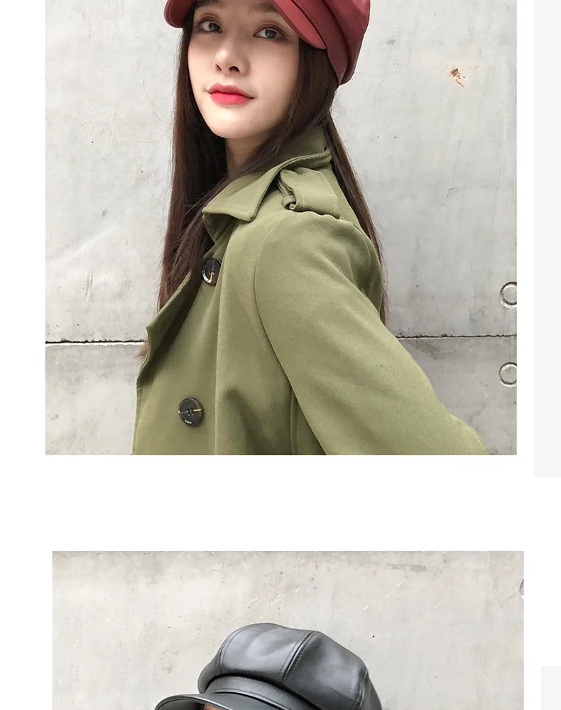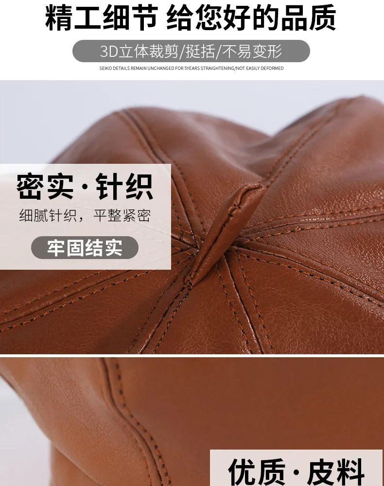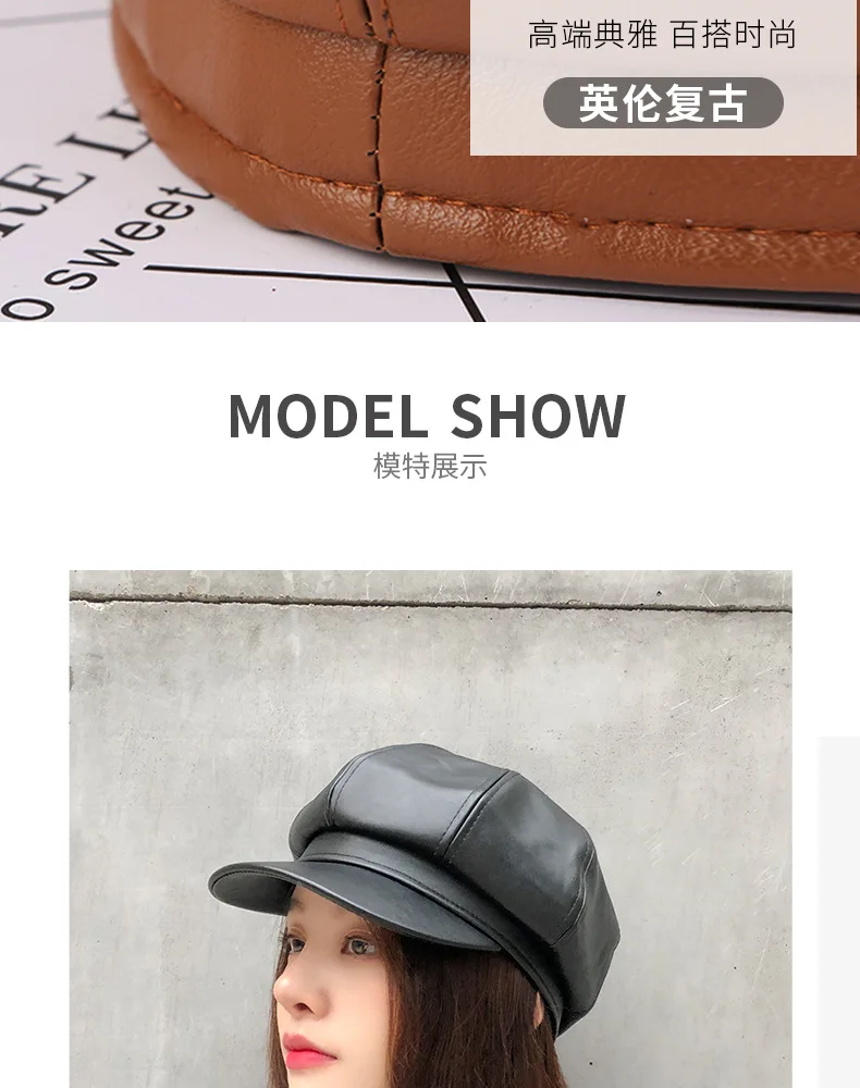 Женский восьмиугольный берет HanXi, зимняя шапка из искусственной кожи с козырьком
