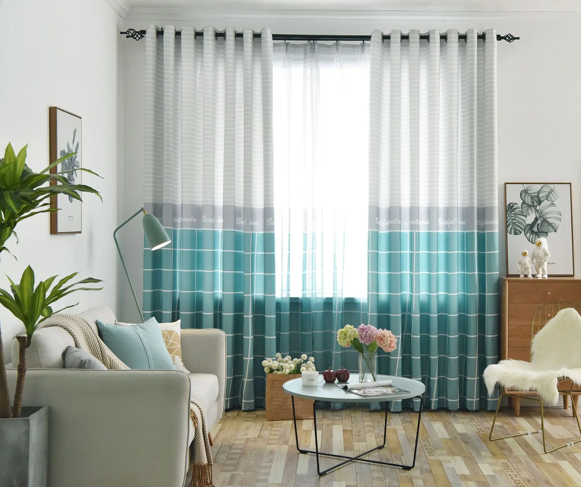 Затемняющие шторы с современным синим пейзажем, Короткие Занавески ...