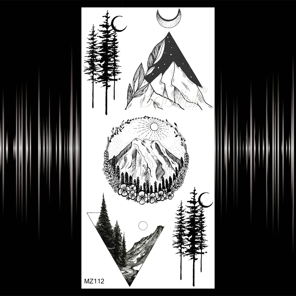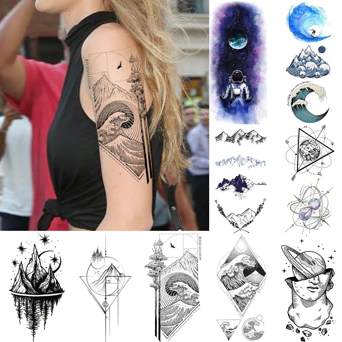 Геометрическая линейка волна временная татуировка наклейка для мужчин женщин мужчин поддельные треугольные горные татуировки водостойкие боди-арт руки шеи татуировки