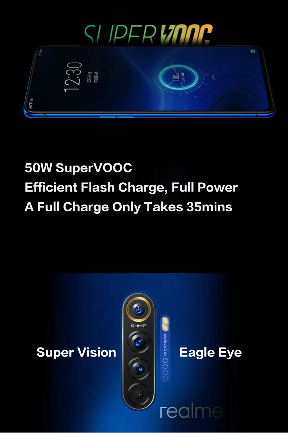 Оригинал Realme X2 Pro мобильный телефон Snapdragon 855 Plus Android 9,0 6,5 "90 Гц 12 Гб RAM 256 ГБ ROM 64.0MP 50W Super VOOC