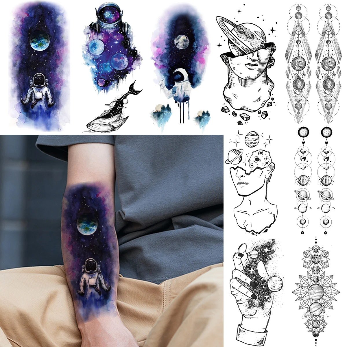 Татуировки Временные для мужчин и женщин, реалистичные цепочки с планетами, космонавт, земля, боди-арт, искусственные татуировки, наклейки