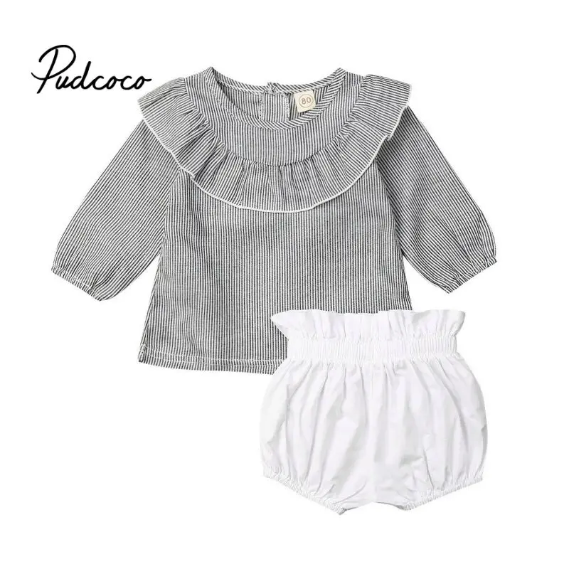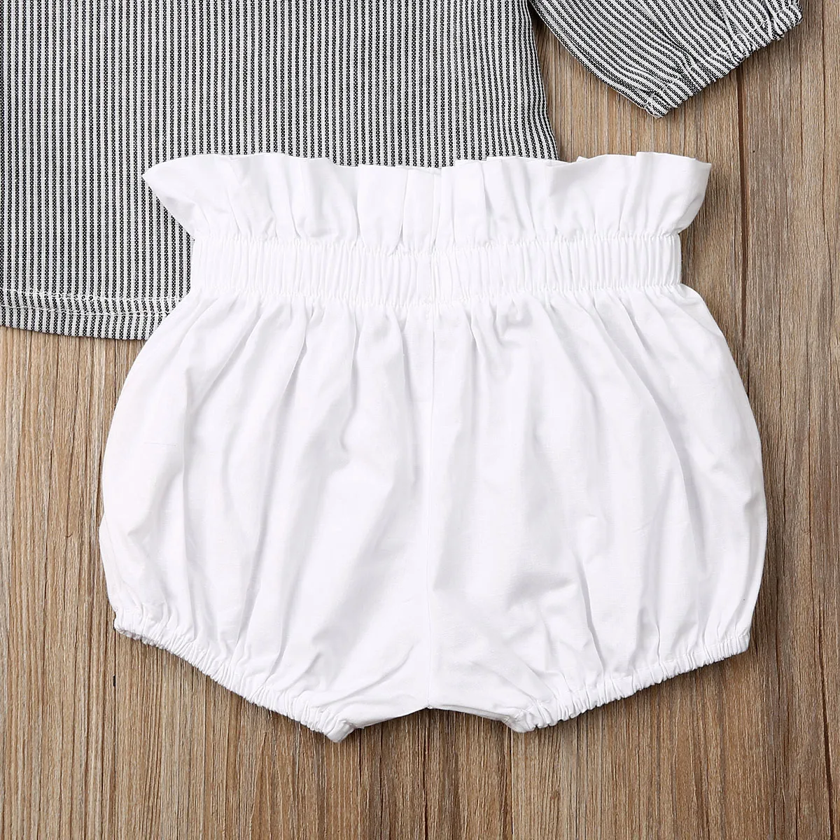 Комплект одежды из 2 предметов pudcoco, летняя одежда для девочек, футболка в полоску + белые шорты, верхняя одежда для маленьких девочек от 6 месяцев до 4 лет