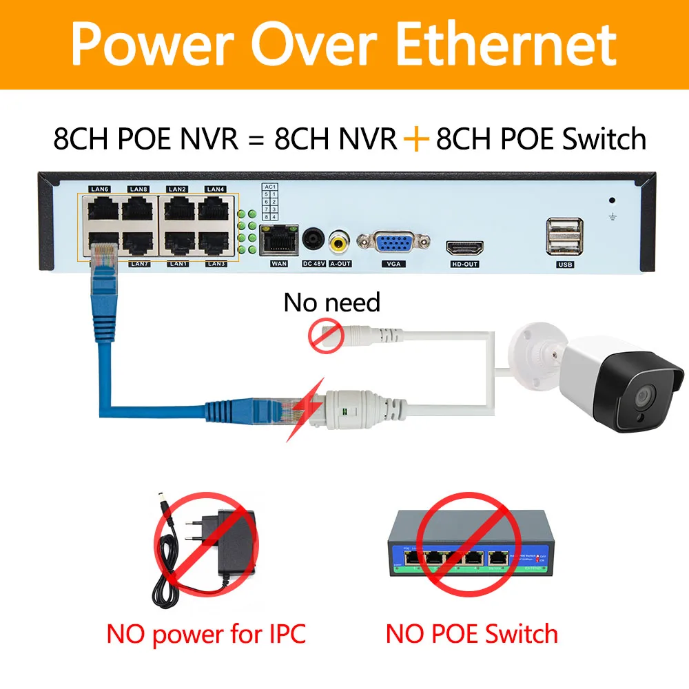 Сетевой видеорегистратор H.265, 8 каналов * 5 Мп, 4 канала8 каналов, PoE, NVR, 48 каналов, для HD5 Мп1080P, IP-камер, PoE 802.3af, ONVIF