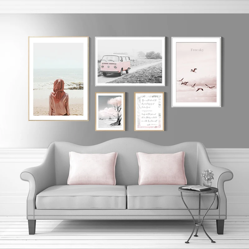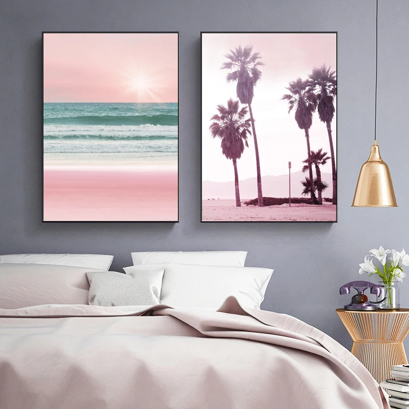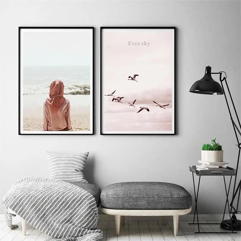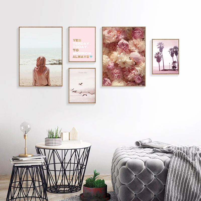 Морской пейзаж, скандинавский цветок, птица, холст, живопись, постеры, Розовый Одуванчик, художественные принты, настенные картины для гостиной, дома