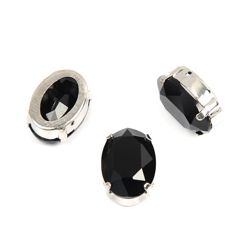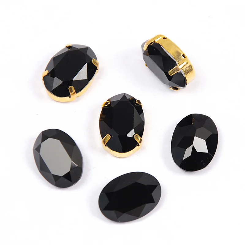 Черные стразы YANRUO 4120, Овальные, Пришивные, с золотыми и серебряными когтями, Стразы для обуви