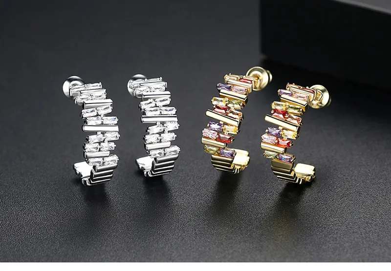 Женские полукольцевые клипсы FXLRY, белые, разноцветные, с микроинкрустацией из циркония, для вечерние, роскошные украшения, подарок