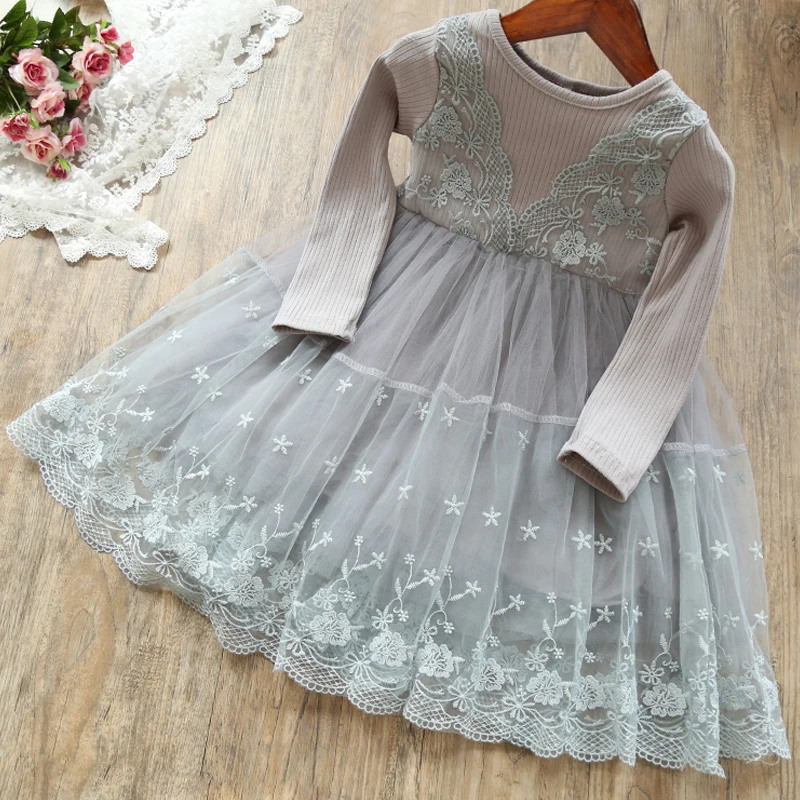 Платье с длинным рукавом для девочек, кружевное платье-пачка с цвет...
