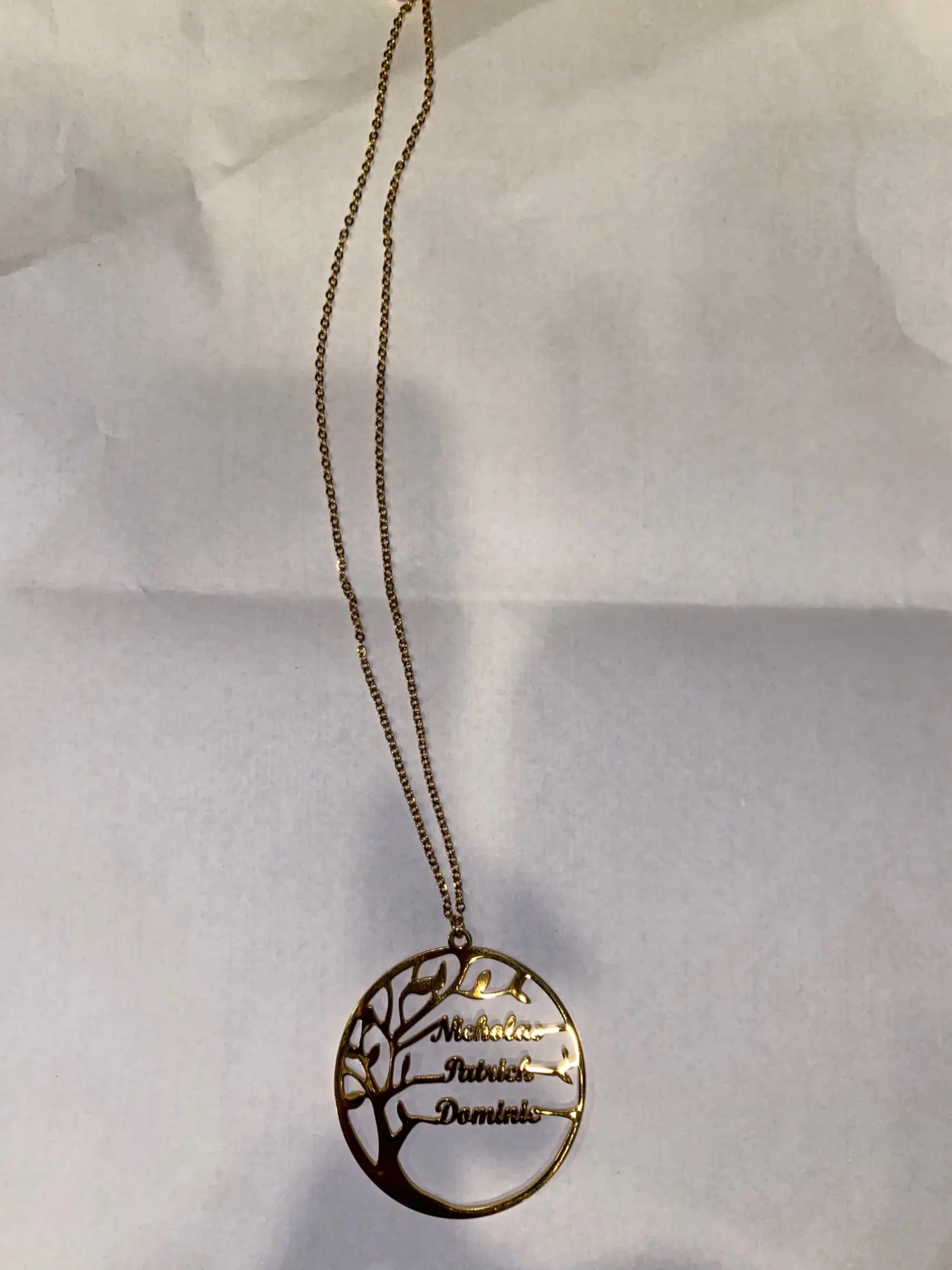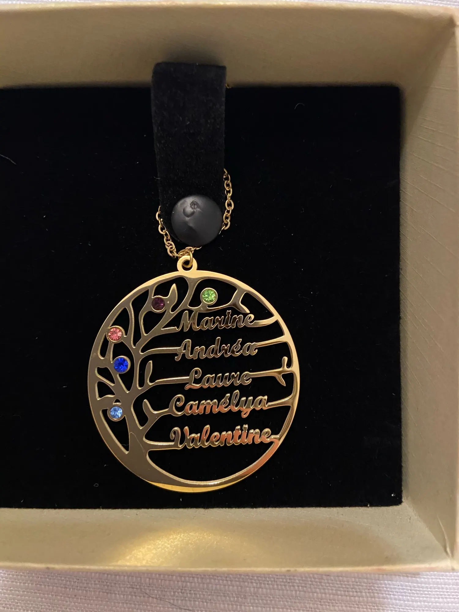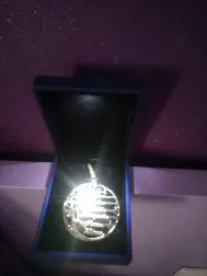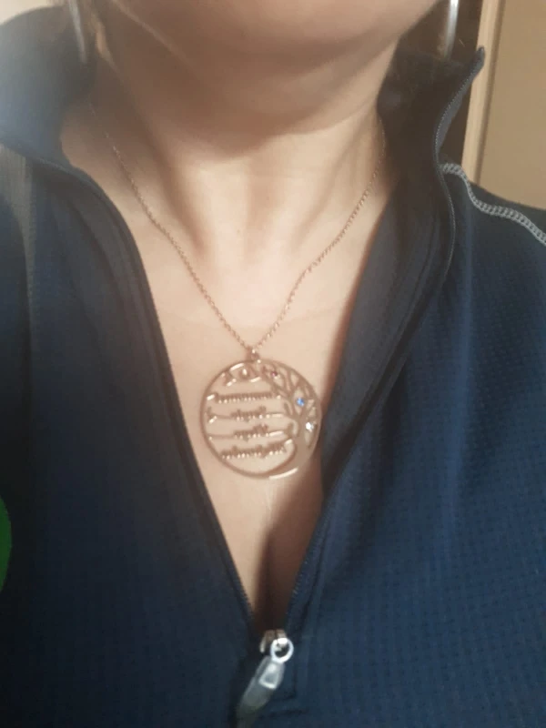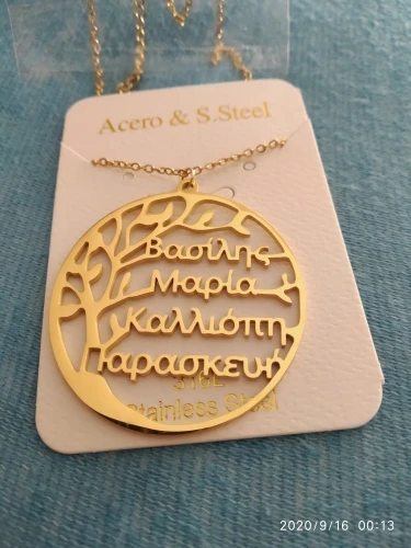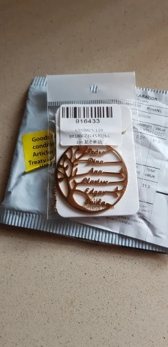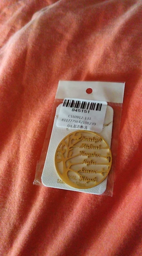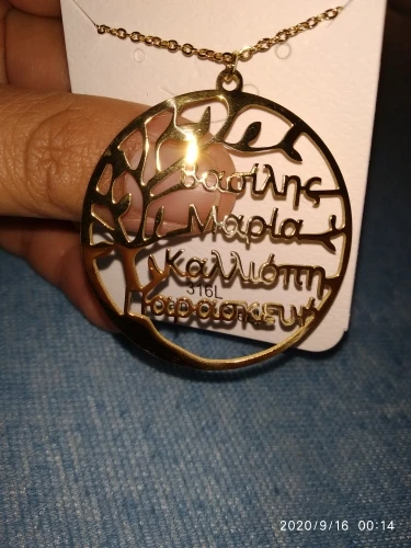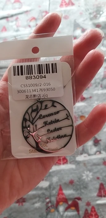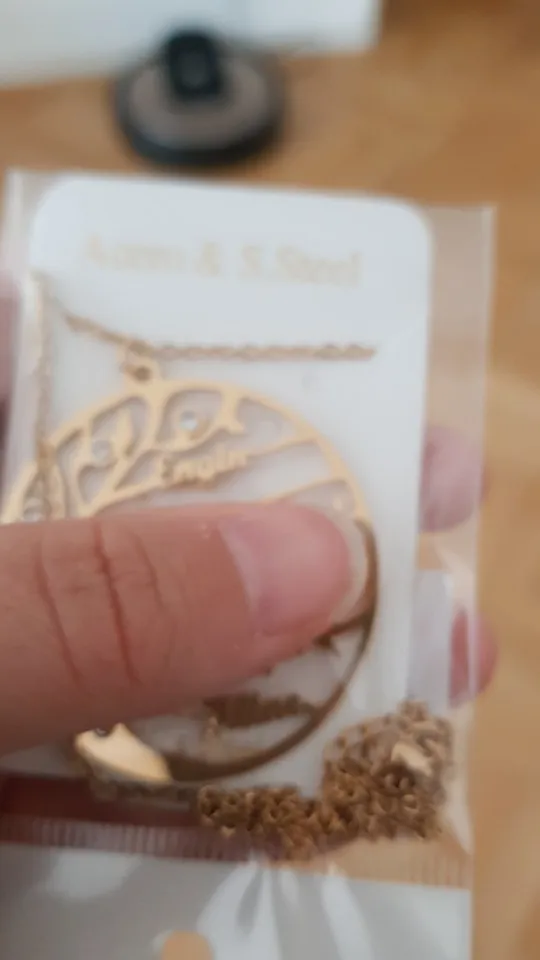 Быстрая отправка. Гравировка красивая. Камни немного незаметны. Круглый довольно большой. Я думал, что он немного меньше. Но он красивый. Тонкая и базовая цепочка. Продавец очень приятно обсудить это. Спасибо вам