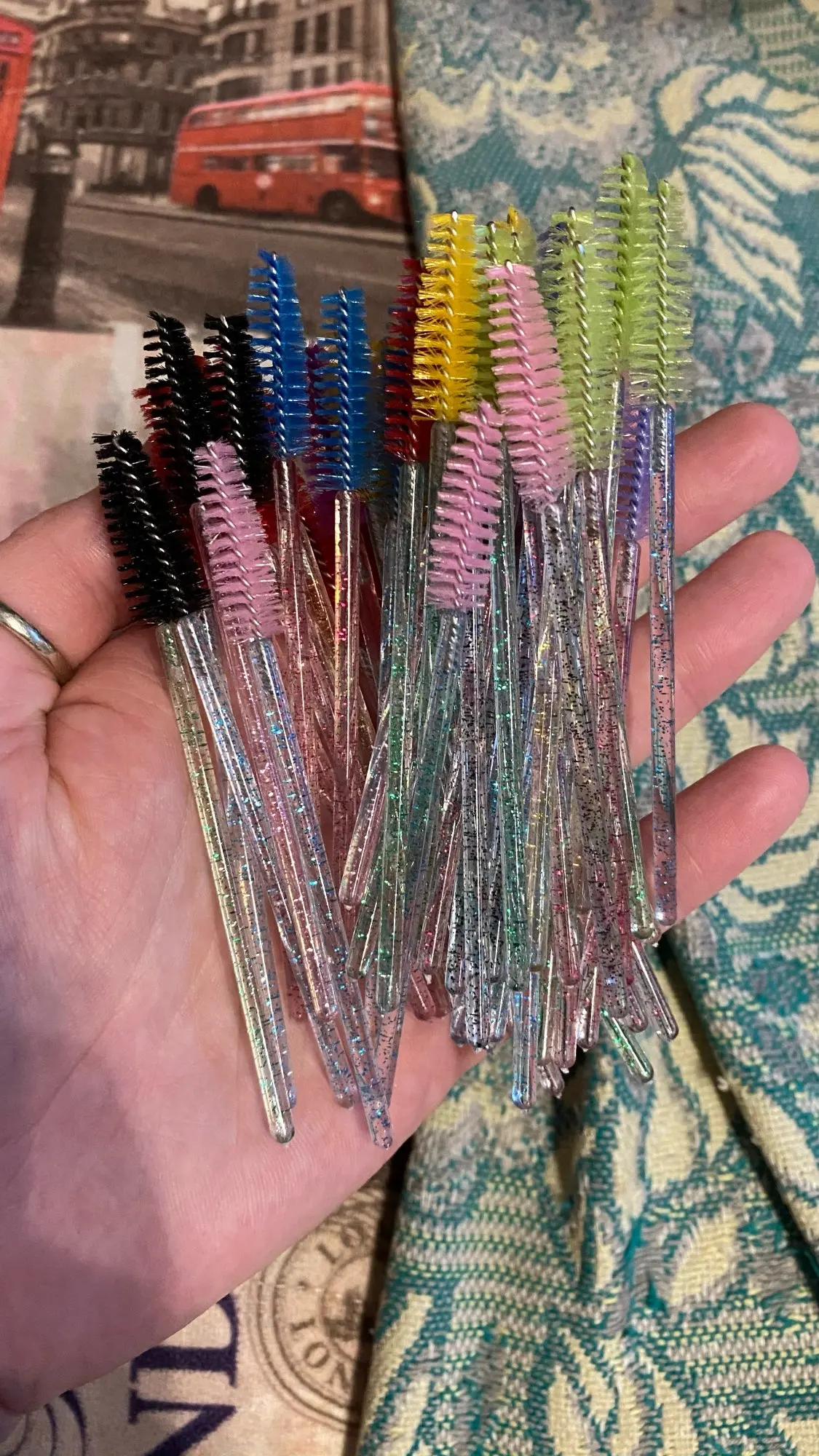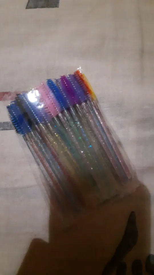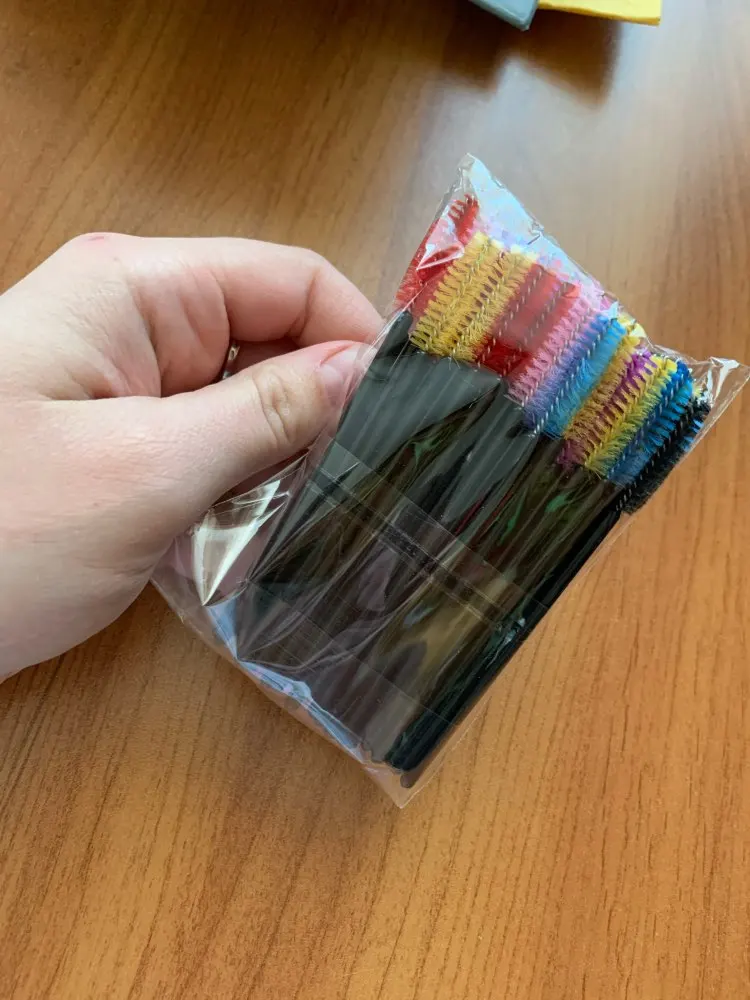 классные расчесочки для ресничек и не дорогие , там так же есть чёрненькие , штук ровно 50 только что пересчитала так что берите не пожалеете шло где-то 2 месяца точно сказать не могу не помню до этого я где то ещё заказывала и там стоило дороже чем тут , надо было сразу тут заказывать