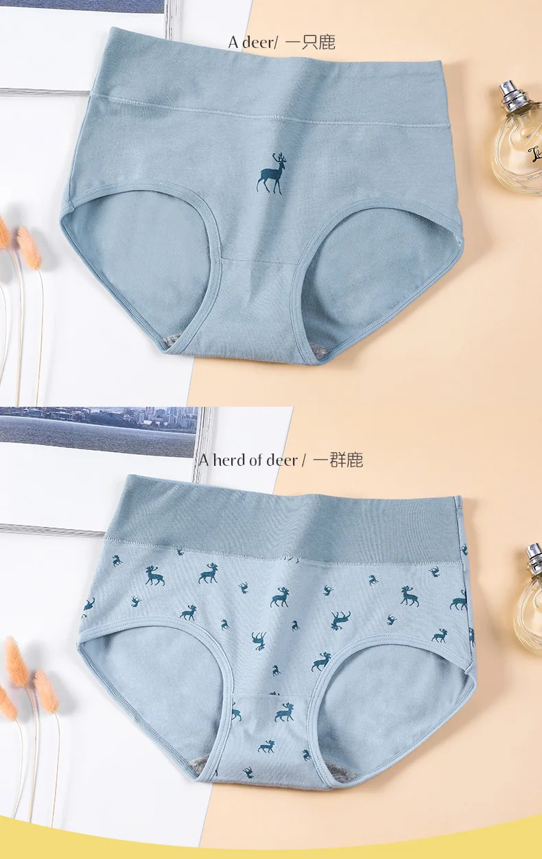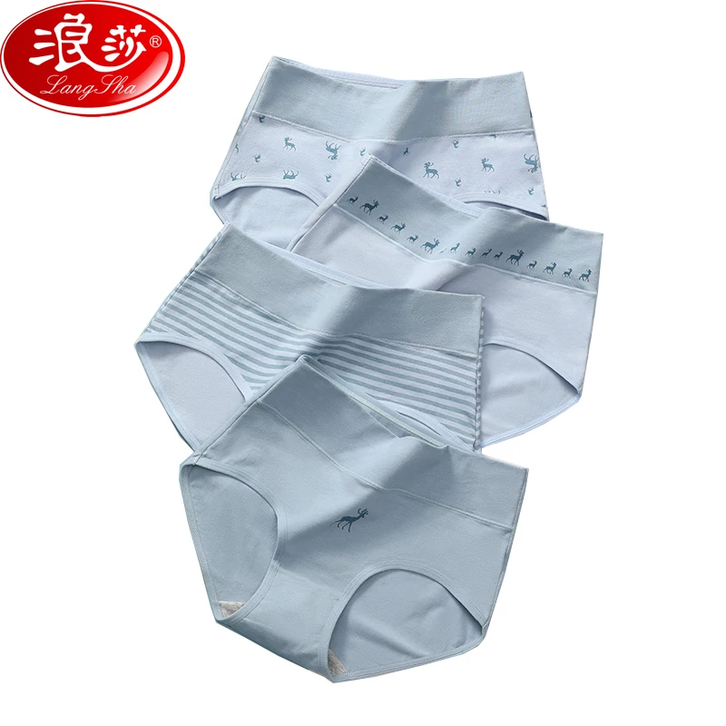 Трусы женские хлопковые, с высокой талией, бесшовные, с принтом, 4 шт.