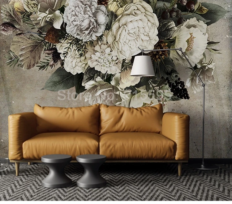 Пользовательские Настенные обои Европейский стиль ретро цветочный цветок искусство стены живопись гостиная спальня фон домашний декор обои