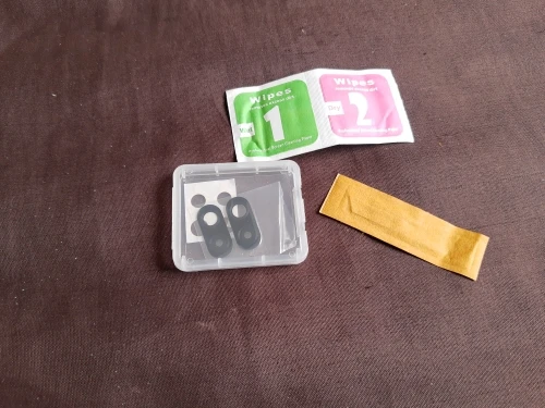 The camera glass arrived like 15 days before expected date, I'm pleased because of that. The product is fine, it is what I needed, now I can repair my phone. In the package there were 2 wipes, a little blade, the camera glass, and some stickers (these I don't know what are they for, I simply used a superglue).