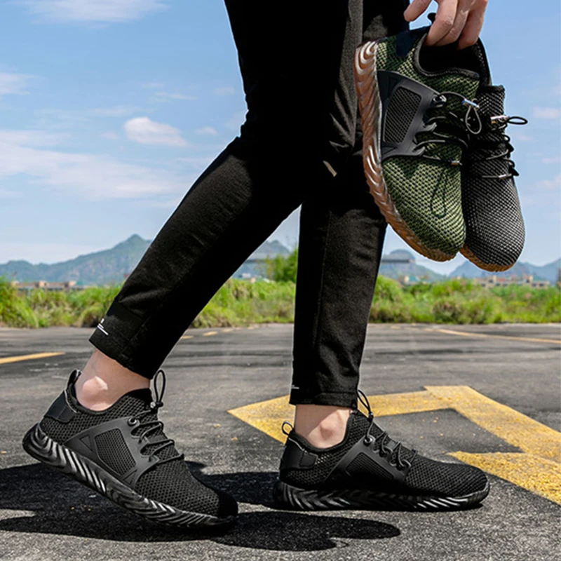 Неразрушаемая обувь для мужчин и женщин, мужские безопасные ботинки со стальным носком, рабочие дышащие легкие кроссовки с защитой от проколов