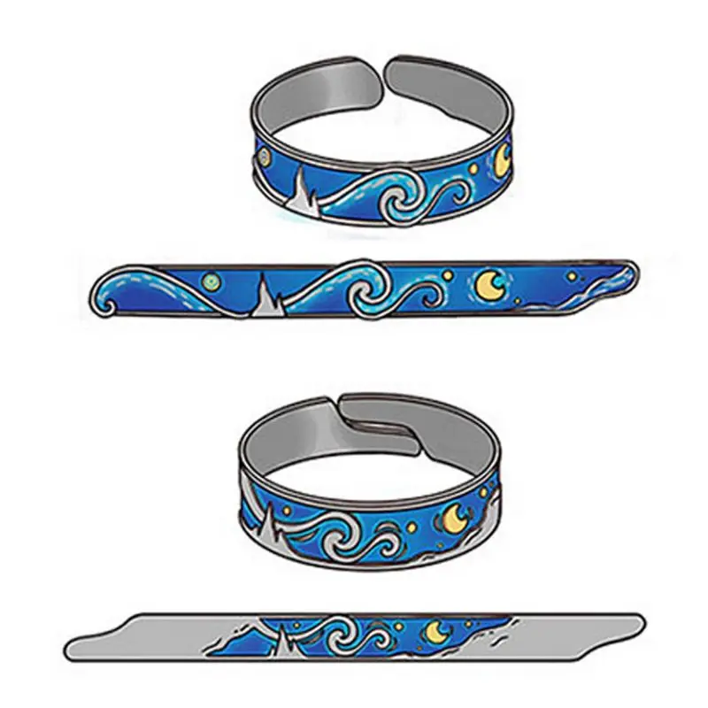 S925 Van Gogh звездное небо открытые влюбленные кольца Band романти...