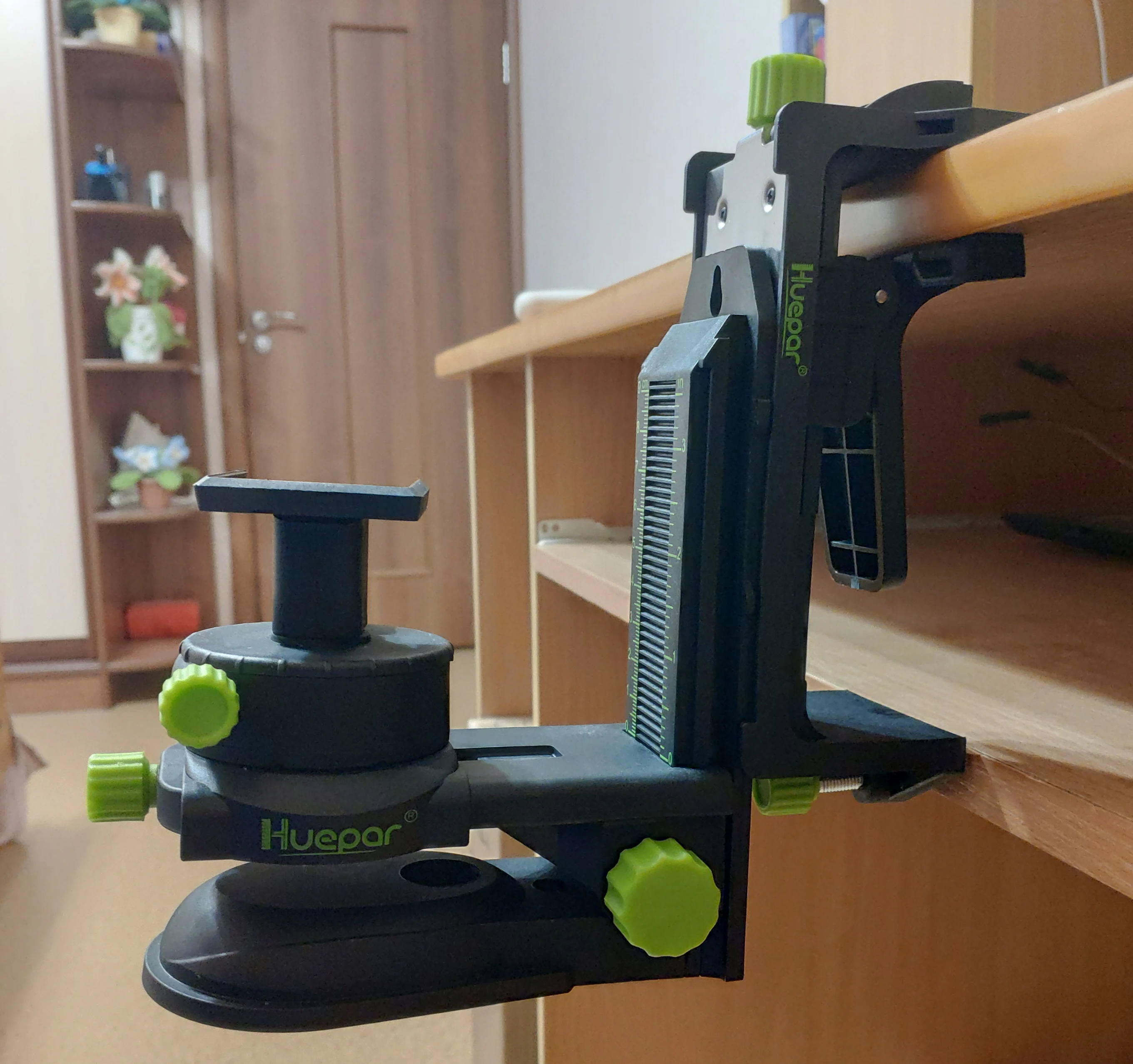 Великолепный инструмент. Мощный магнит, зажим с регулируемой толщиной и корректировкой вертикали, резьба для любого типа штатива и даже просто на вбитый гвоздь подвесить можно! Регулировка луча тонкая, в трёх плоскостях и вокруг своей оси. На вертикальной планке тормоз, чтоб под своим весом не проседал. Можно поставить на пол, повесить на стену, и даже на потолок (сам лазер в этом случае крепится за верхнюю "башенку"). Материал корпуса и винты внушают уважение. Покупкой однозначно доволен.