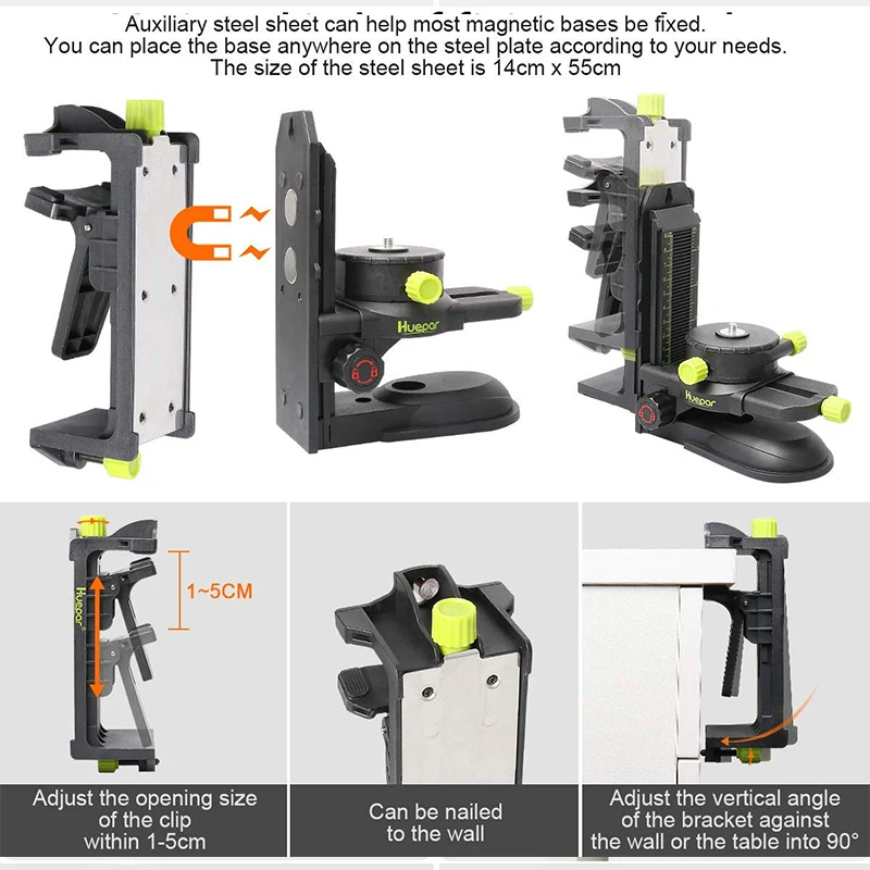 Кронштейн для точной настройки лазерного уровня Huepar, многофункциональное поворотное магнитное основание с регулируемым зажимом, регулируемый инструмент на 360