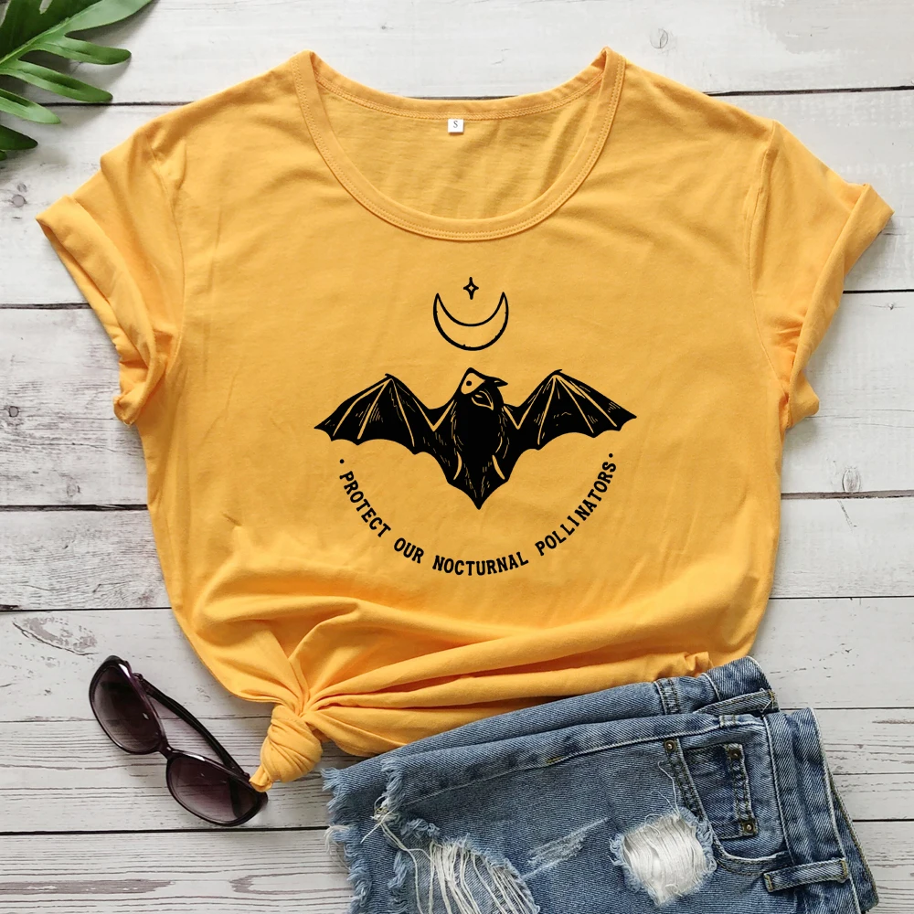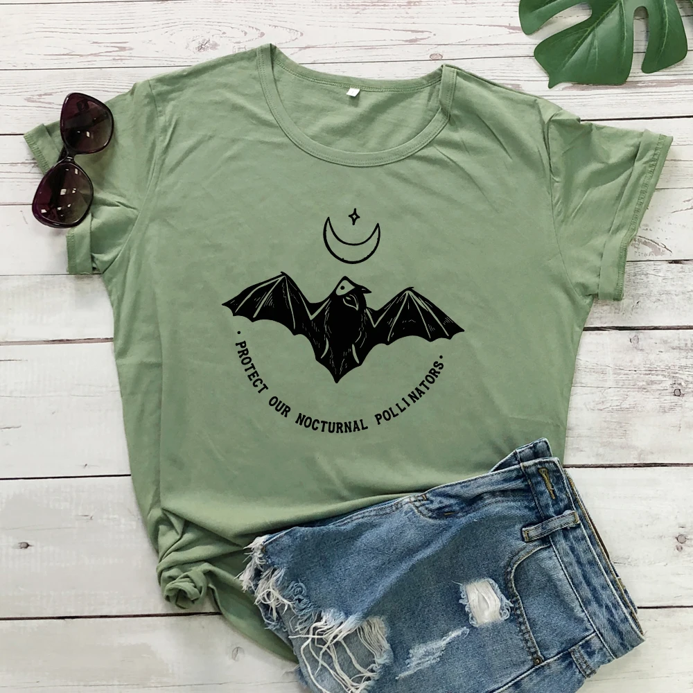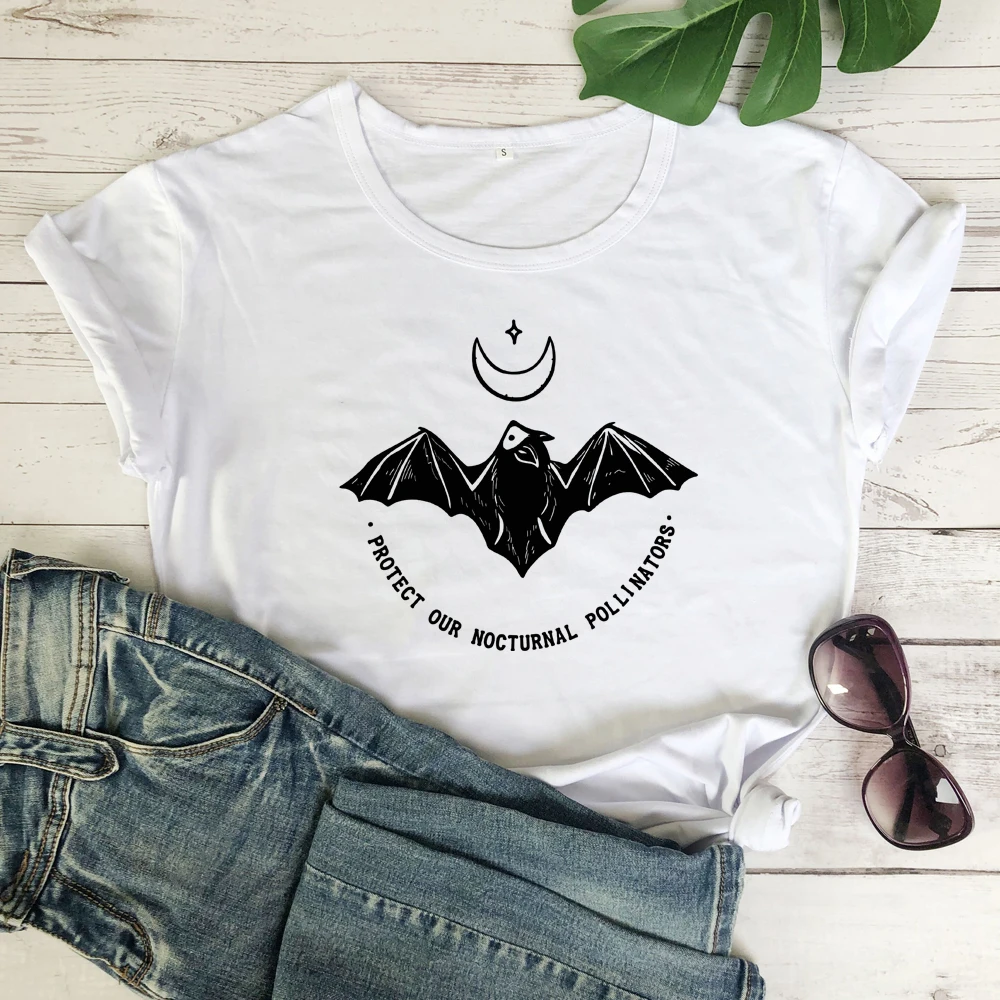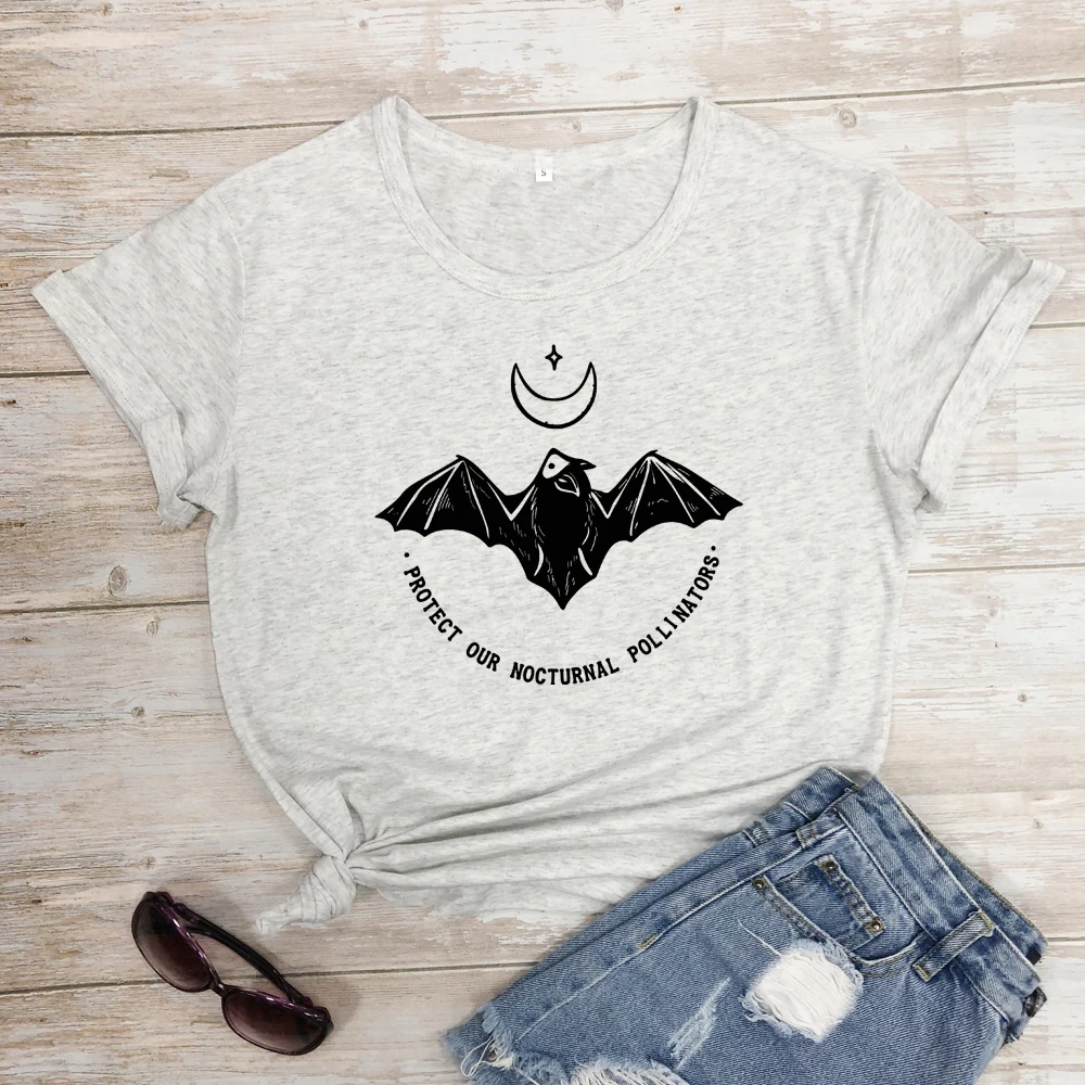 Футболка с надписью защити наших ночных опылителей, женская летняя футболка с рисунком в стиле Звезда и Луна, с принтом летучей мыши