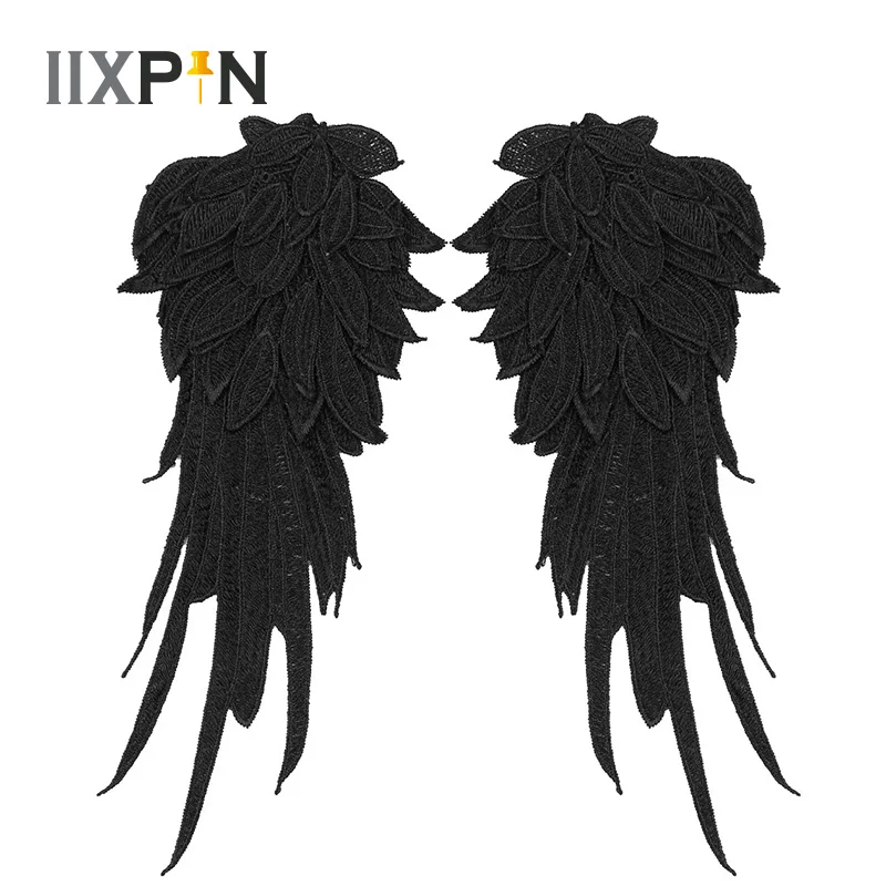 Черные крылья ангела крылья косплей крылья вышитые патч ткань Утюг нашивки значки Крылья Ангела аппликация Косплей крылья