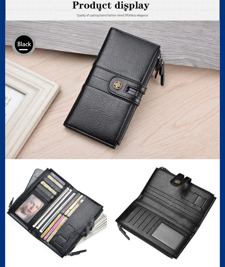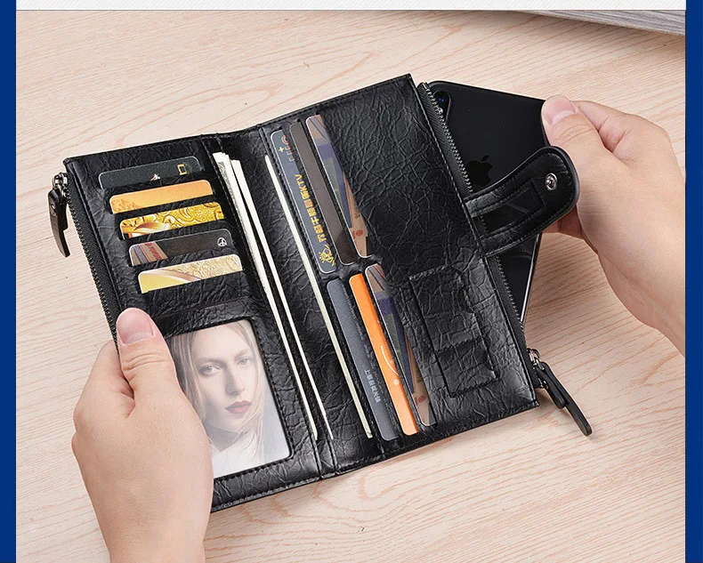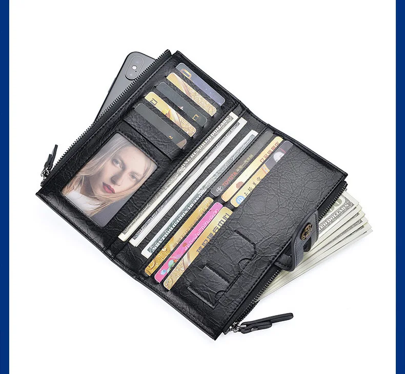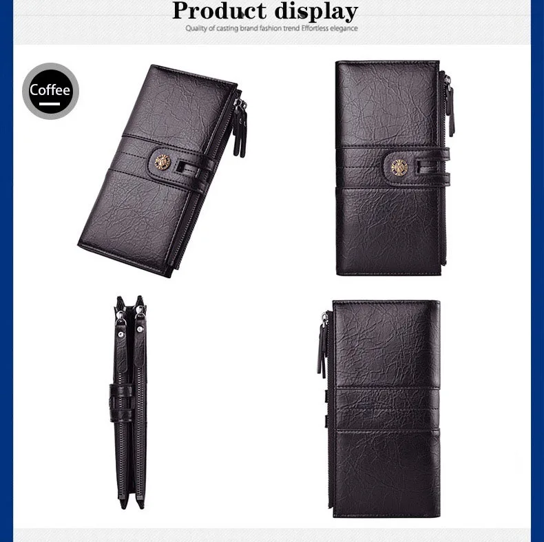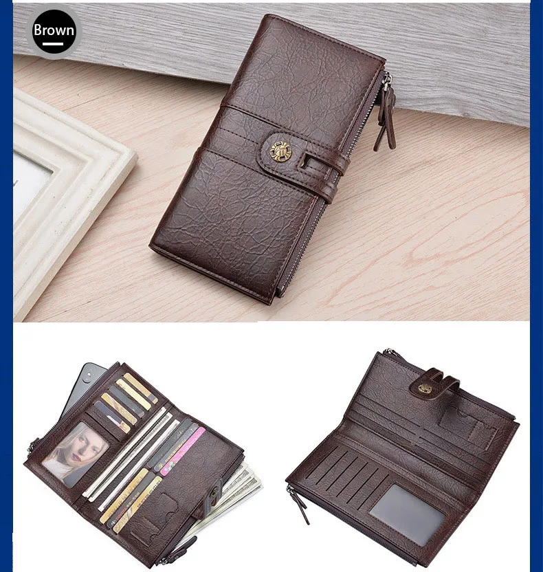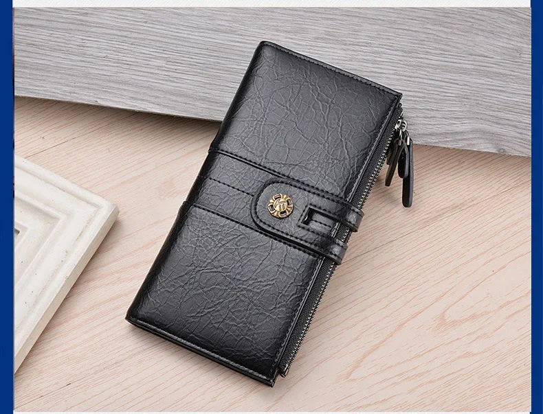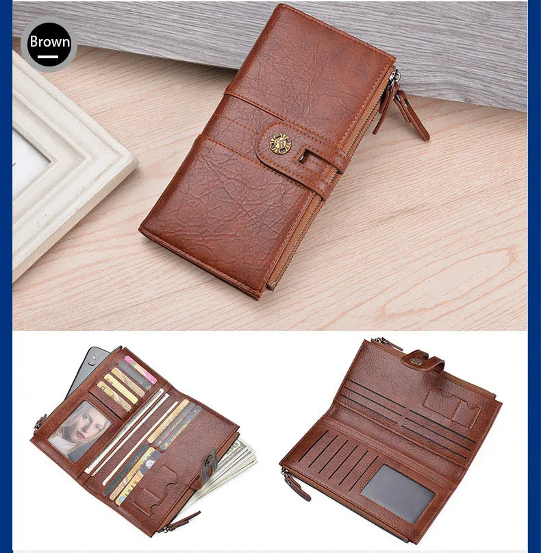 RFID мужской бумажник с двойной молнией, кожаный бумажник с длинной застежкой, бумажник для мужчин, роскошный мужской кошелек, кожаные кошельки, клатч, сумка