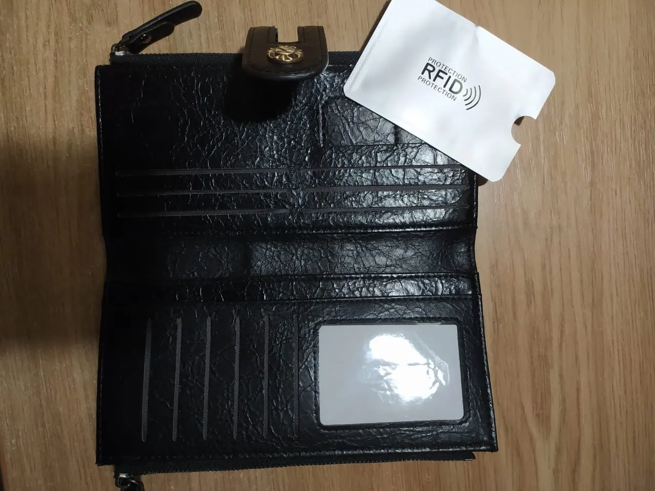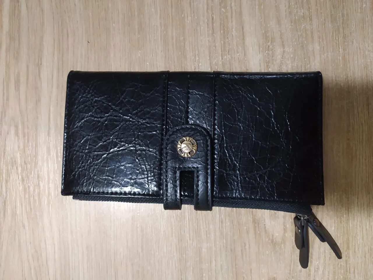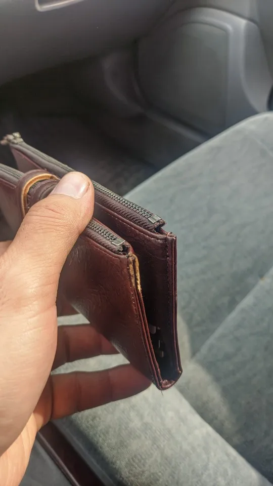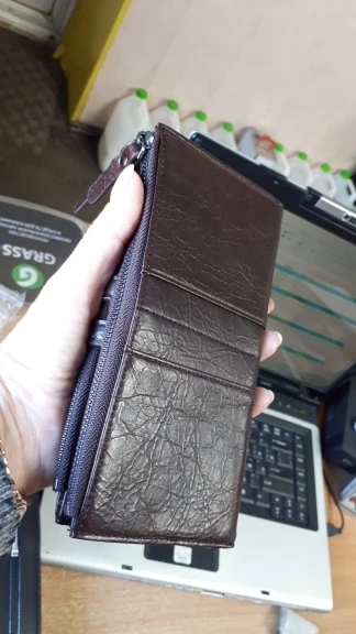Хороший кошелек, немного тонкая кожа, но хорошо. Достаточно места для карт, наличных и т. Д.