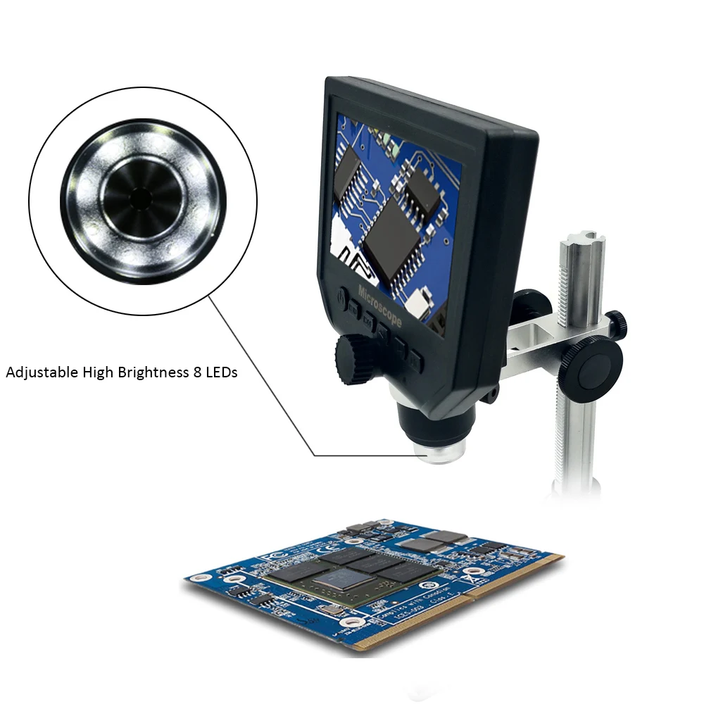 Описание: Микроскоп-G1200 7-дюймовый, разделенный на встроенную литиевую батарею и интерфейс USB Он имеет 7-дюймовый ЖК-экран HD, кронштейн можно вращать под любым углом вперед и назад в соответствии с вашими потребностями, в то время как объектив поддерживает непрерывное увеличение в 1-1200 раз. Мы считаем, что это определенно может стать хорошим помощником для вашей повседневной работы. Особенности: 1: пиксель: HD 12 МП 2: Экран дисплея: 7-дюймовый HD ЖК-дисплей. 3: увеличение: 1-1200 × система непрерывного усиления. 4: расстояние между объектом: от 10 мм до бесконечности (различные расстояния соответствуют разным кратным) 5: встроенная сверхлитиевая батарея, батарея может работать непрерывно 4-5 часов (когда не включена Запись видео в рабочем состоянии) 6: шестнадцать языковых систем: английский, испанский, русский, корейский, японский, тайский, иврит, Португалия, немецкий, французский, Италия, Турция, чешский, Польша, традиционный китайский, упрощенный китайский. Преимущество 1: G1200 это регулируемый под углом цифровой микроскоп, который решает проблему высокого отражения. Это большой опыт в индустрии обслуживания электроники, и важно отметить, что эта машина имеет большое рабочее пространство, чем другие. Под этим микроскопом очень удобно использовать пинцет, Электрический паяльник и другие Преимущество 2: Большинство других микроскопов имеют двухступенчатое увеличение, либо слишком большое, либо слишком маленькое. Трудно найти подходящий вид. Это цифровой микроскоп с непрерывным увеличением, он имеет широкий спектр опций просмотра по сравнению с другими микроскопами, в диапазоне от 1 до 1200 кратного увеличения и всегда находит подходящий многократный для вас. Характеристики: Размер экрана: 7 дюймов Разрешение экрана: 1024x600 Заставка: Выкл. · 30 сек · 1 Мин · 2 мин (опционально) Автоматическое отключение: ВЫКЛ. 3 минуты. 5 минут. 10 минут Источник светильник Гц: 50 Гц · 60 Гц Языковые Параметры: 16 языков Настройка даты: год, месяц, день | Часы, минуты, секунды Формат: да/нет По умолчанию: да/нет В режиме видео: Разрешение: 1080FHD, 720P, VGA Камера с циркуляцией: Выкл./3 минуты/5 минут/10 минут. Когда карта памяти заполнится, основные видеоданные будут удалены и видео будет сохранено. Высокий динамический диапазон HDR: вкл/выкл (при включении питания функция записи видео включается автоматически, если какой-либо объект перемещается под объективом без ручного управления.) Компенсация экспозиции: 7 классов на выбор Метка даты: отображение/закрытие даты и времени можно выбрать на экране В режиме фото: Задержка фотографии: одиночная. 2 секунды. 5 секунд. 10 секунд. Фото пикселей: 1,3 м · 2 м · 5 м · 8 м · 10 м · 12 м Непрерывная съемка: 3 последовательных снимка Качество фото: качество · Стандарт · компрессия Острота: сильная · стандартная · мягкая Цвет: небытие · черно-белый · ностальгия ISO: автоматический · 100 · 200 · 400 Компенсация экспозиции: 7 классов на выбор Помощь в фотосъемке: включение/выключение от ударов руками Этикетка даты: вкл/выкл Место для хранения: Часы: вверх, вниз, удаление, защита Переключение режима: режим записи/режим камеры/режим воспроизведения Источник питания: интерфейс постоянного тока (Micro USB)/встроенный большой литиевый аккумулятор емкостью 3000 мАч Разъем для флеш-карты (MicroSD): Поддержка 1-128 ГБ. Класс 10 + скорость Регулятор яркости света 8 светодиодный ных ламп с непрерывн