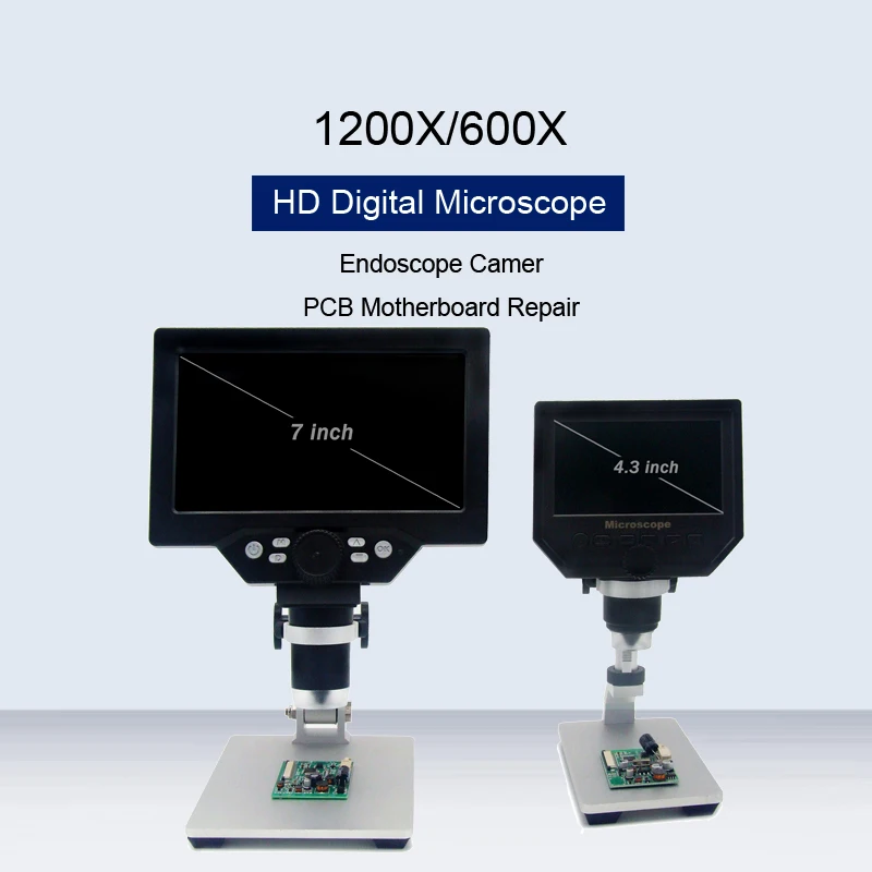 Камера-Эндоскоп 600X1200X, цифровой электронный микроскоп, ЖК-дисплей увеличитель HD, для ремонта печатных плат, материнских плат, со стентом из алюминиевого сплава