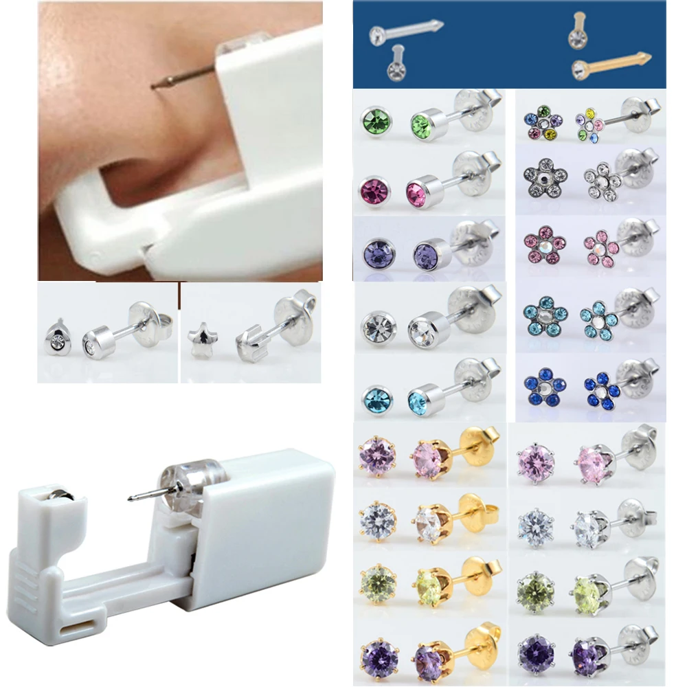Одноразовое безопасное устройство для пирсинга носа и ушей без боли, 1 шт., стерильная рамка, кристаллический гвоздик, пирсинг для ушей, украшения для тела