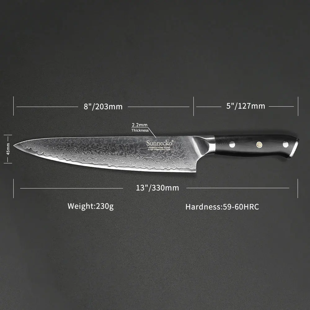 SUNNECKO дамасский поварской нож + точилка для ножей, набор кухонных ножей из 2 предметов, японский VG10, стальной инструмент для резки мяса, Ручка G10