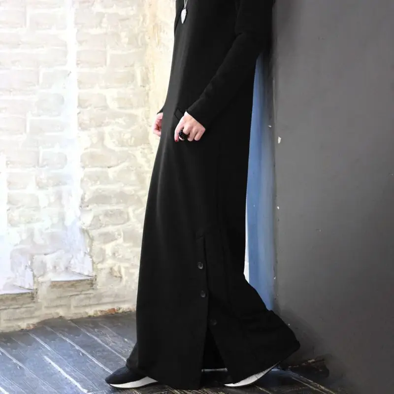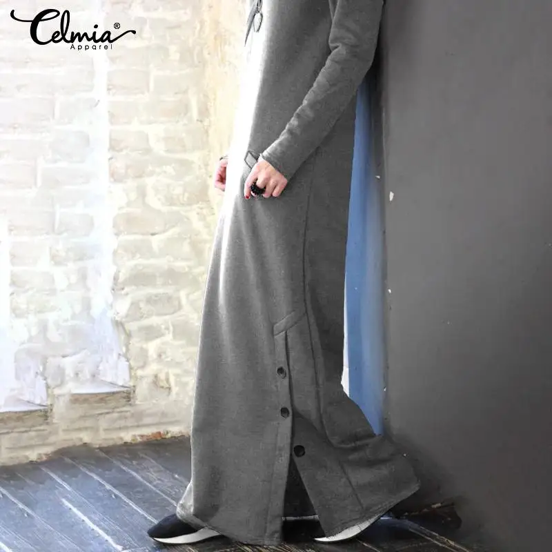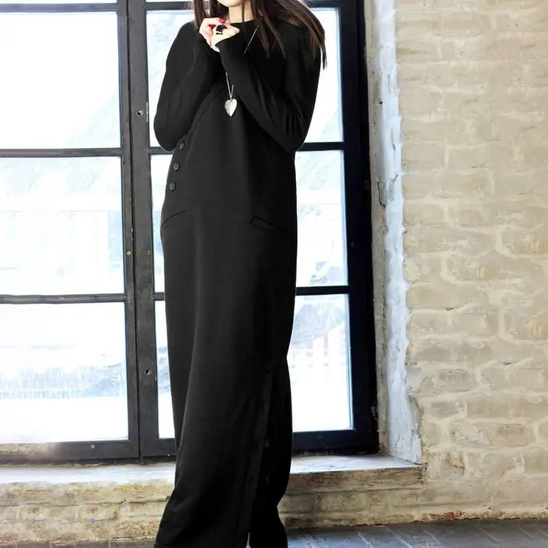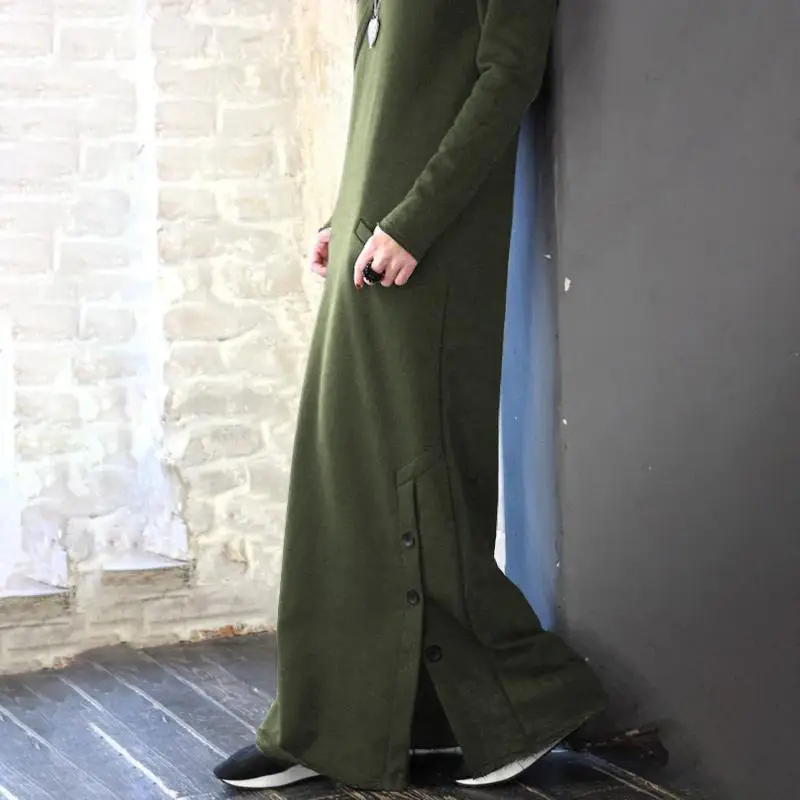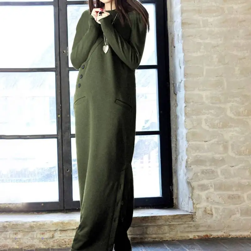 Женское платье-макси на пуговицах, с флисовой подкладкой