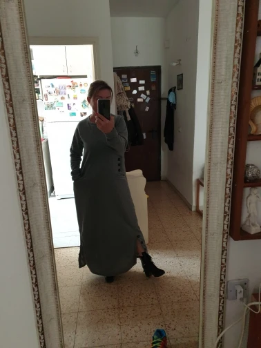 Заказала на размер больше, чтобы носить после родов, но платье очень большое. Хватит и на 9 месяц. На рост 178 длина до щиколотки. Тёплое как толстовка. Мягкое.