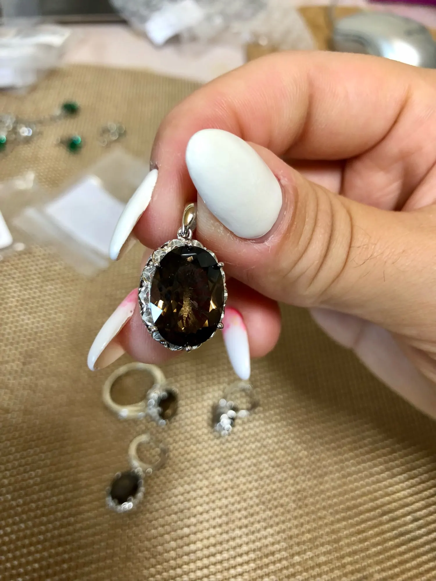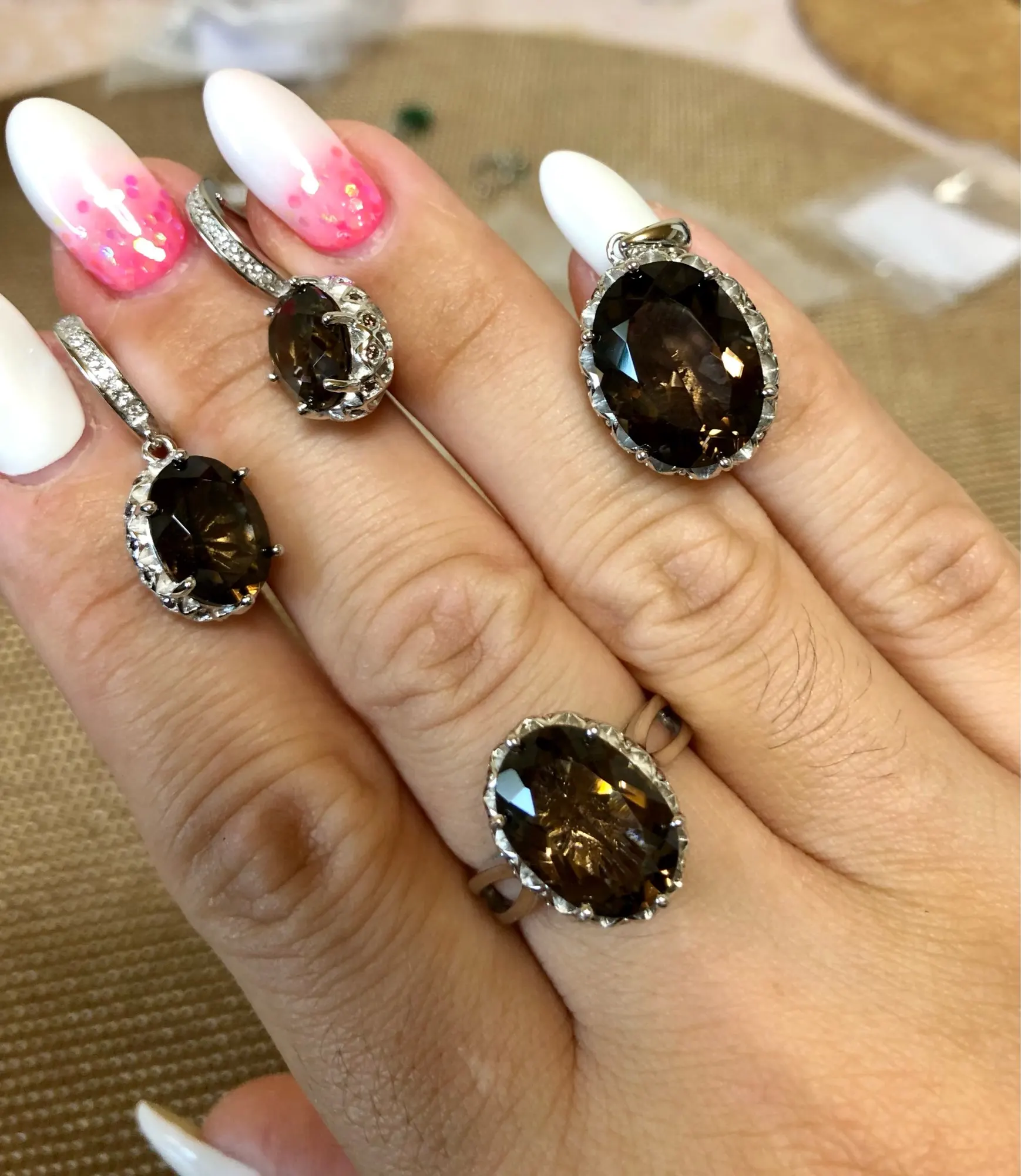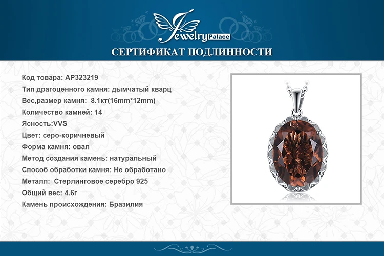 Женское ожерелье из серебра 925 пробы с кулоном из дымчатого кварца 8 карат Нет цепи