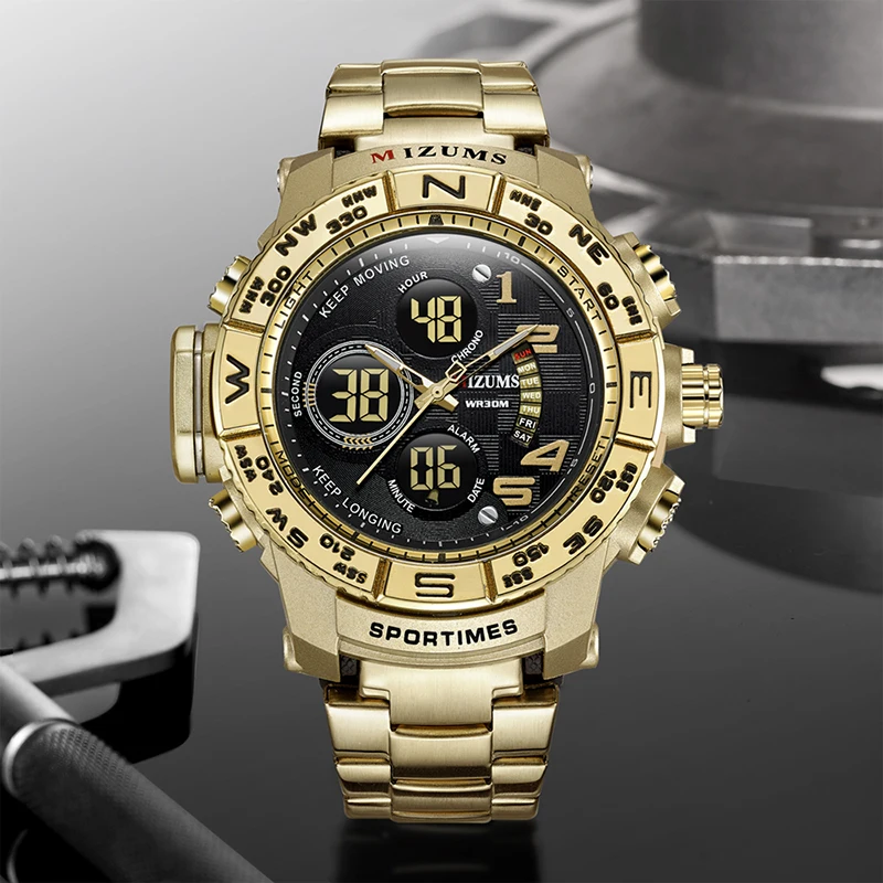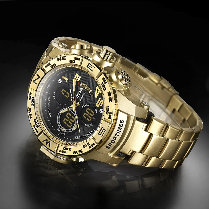 Часы наручные мужские механические, брендовые Роскошные спортивные цифровые золотистые, 2021 2022
