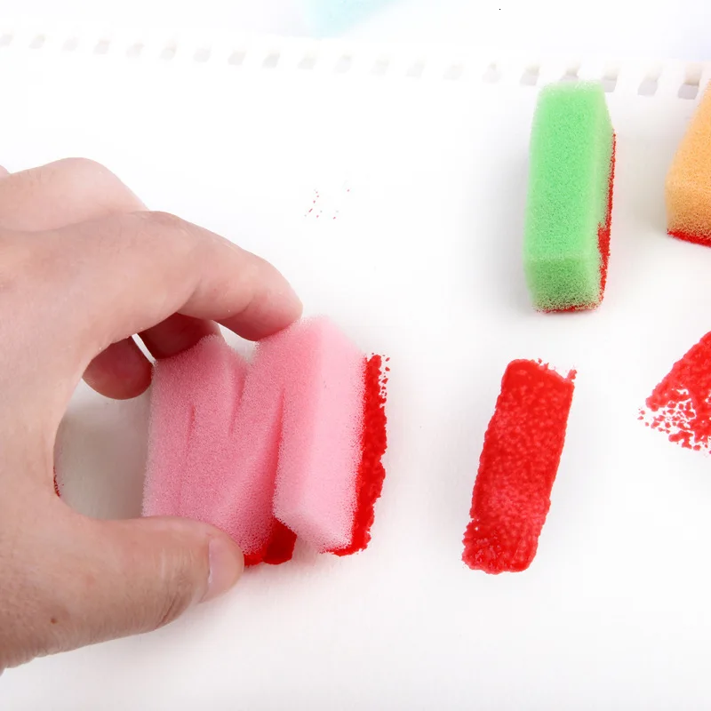 26 шт. детский инструмент для рисования своими руками цветная мини губчатая Кисть Уплотнение Opp мешок Упаковка цветная губка деревянная ручка ручная работа от ребенка