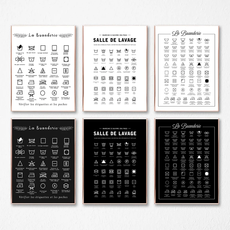 Французский плакат с символом стирки, черно-белый плакат, Настенная картина, Картина на холсте, декор для прачечной