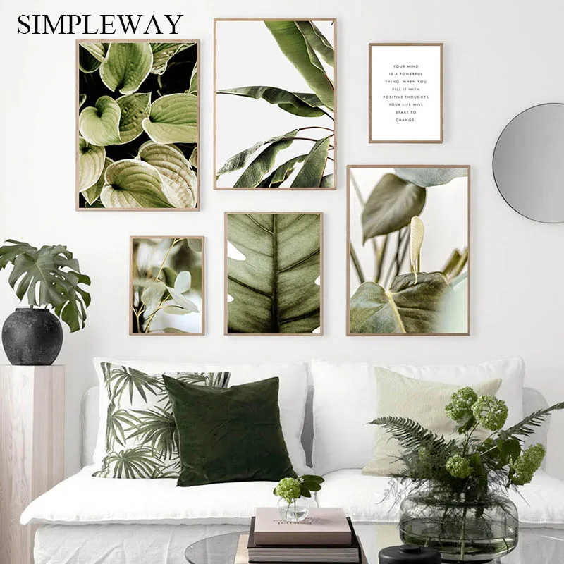 Холщовый плакат с листьями растений, мотивационные цитаты в скандин...