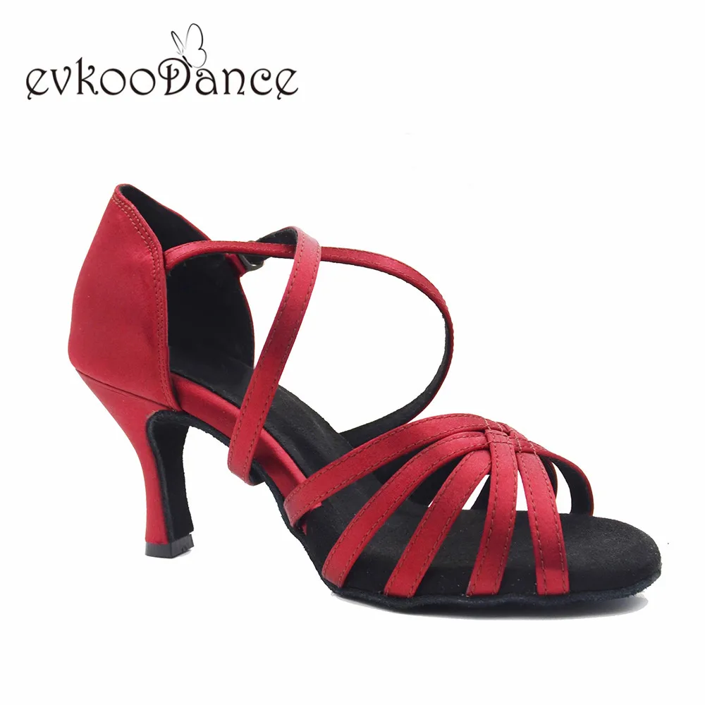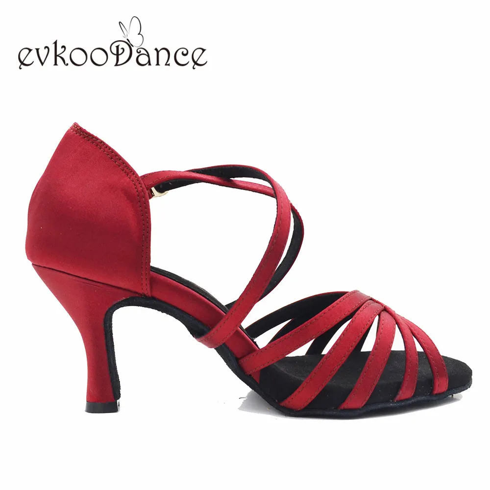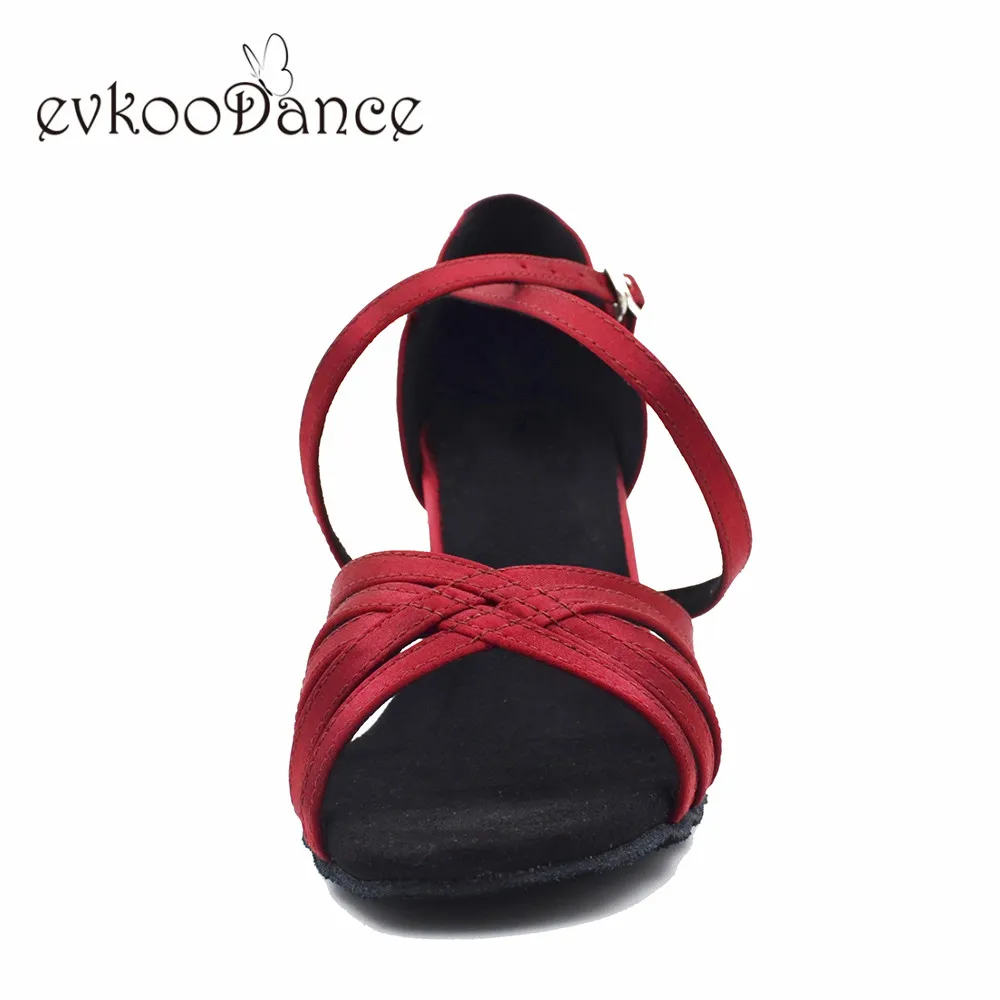 Женские атласные туфли для латиноамериканских танцев Evkoo, туфли Красного и винного цвета на каблуке 7 см, Обувь для бальных танцев и сальсы, размеры от 1 года до 4 лет, Evk609