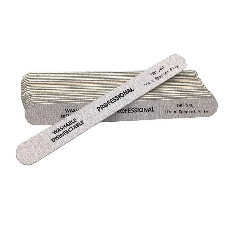 Серые деревянные профессиональные пилки для ногтей, пилки для ногтей, 180/240 Грит, салонные инструменты, шлифовальный файл, буфер