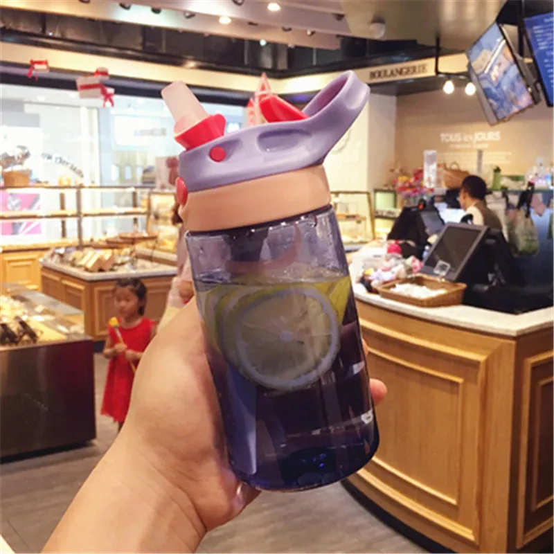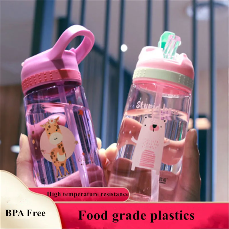 Бутылка для воды пластиковая с трубочкой 450480 мл, детские бутылки для воды, Спортивная бутылка без БФА, посуда для напитков для студентов и школ